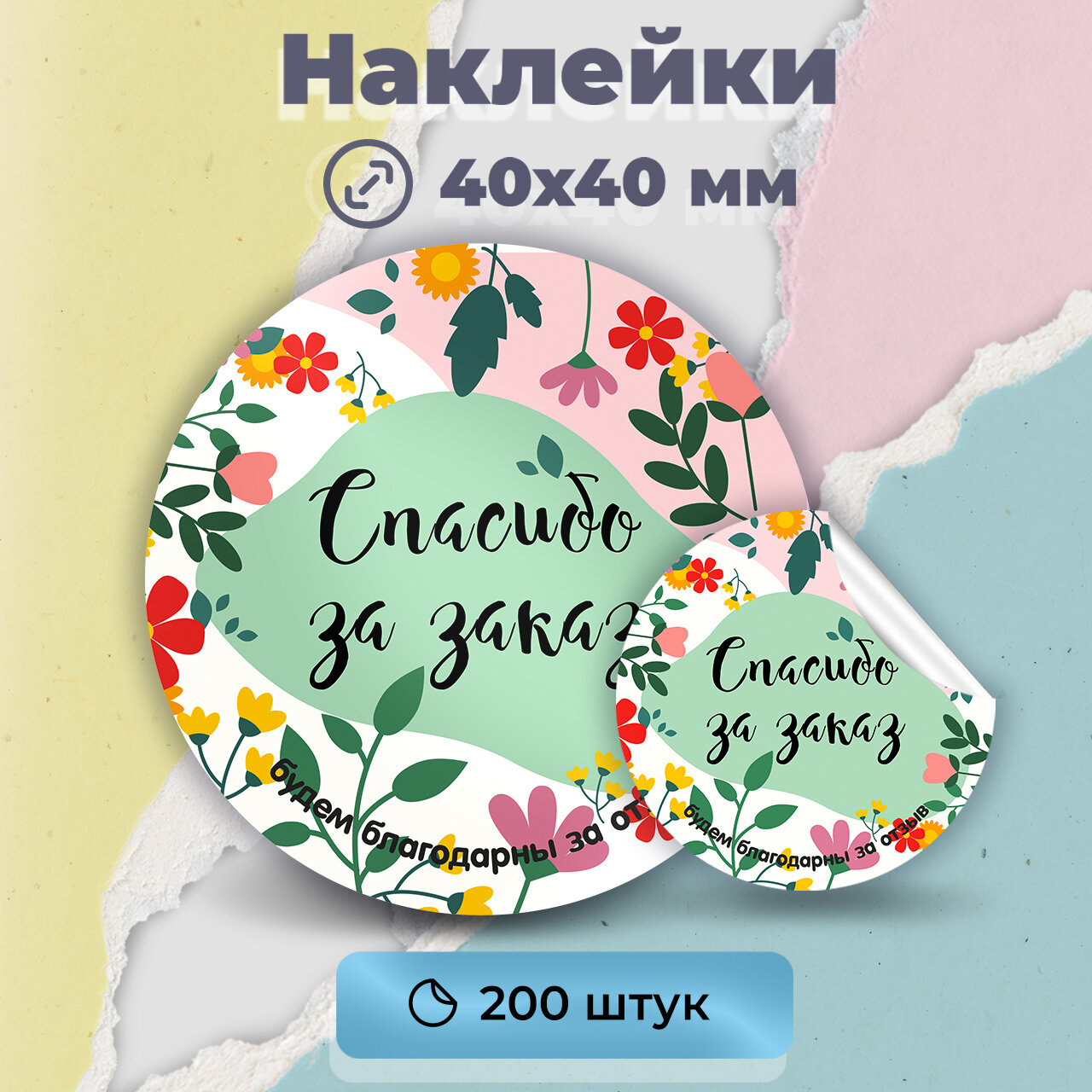 Наклейки спасибо за заказ, диаметр 40 мм, 200 штук информация: