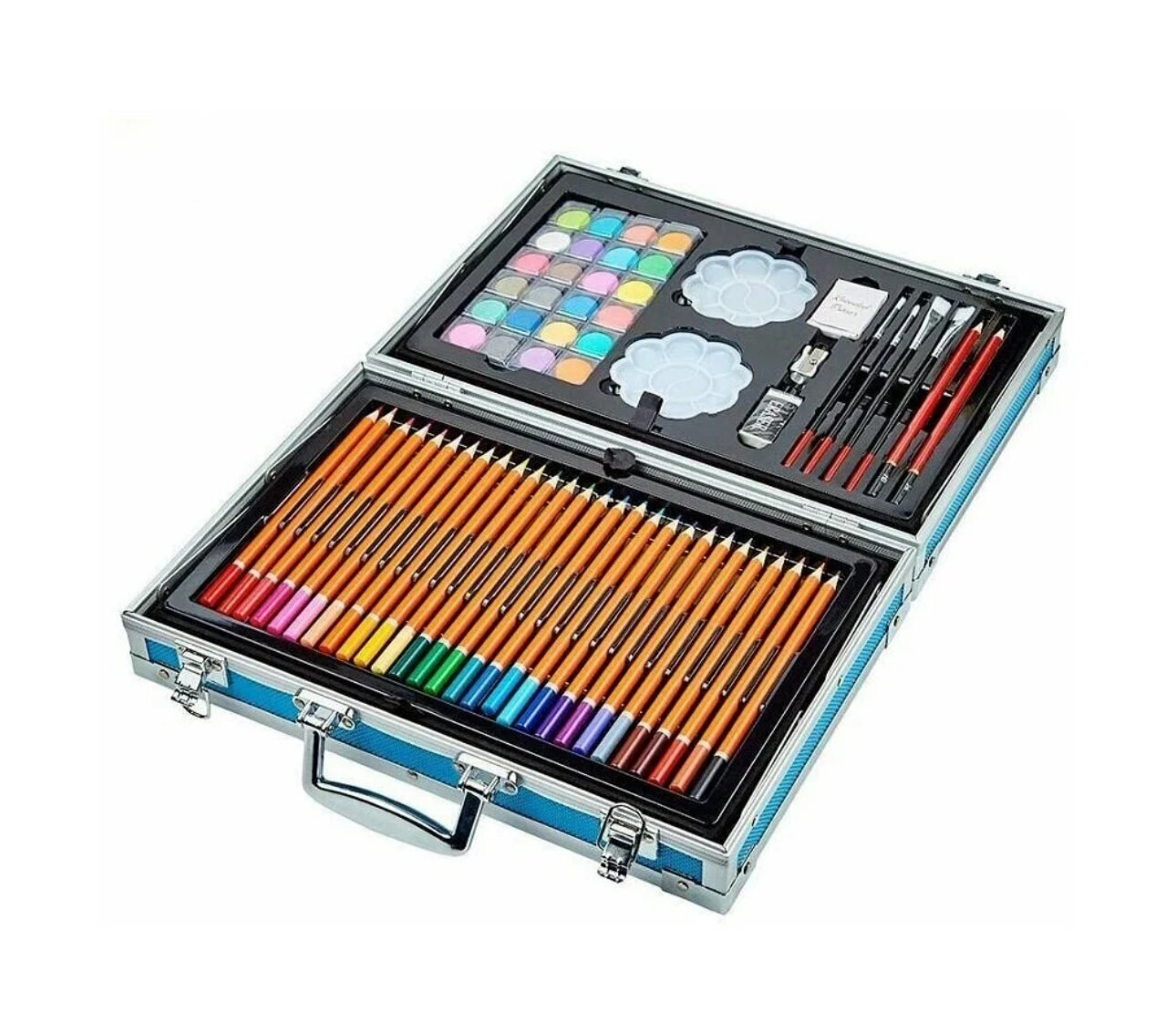 | Комплектация | масляные краски 24 шт, пастель 24 шт, фломастеры 33 шт, цветные карандаши 28 шт, акварельные краски 24 шт, кисти 4 шт, контейнеры для красок 2 шт, простые карандаши 2 шт, ластик, точилка, кейс |