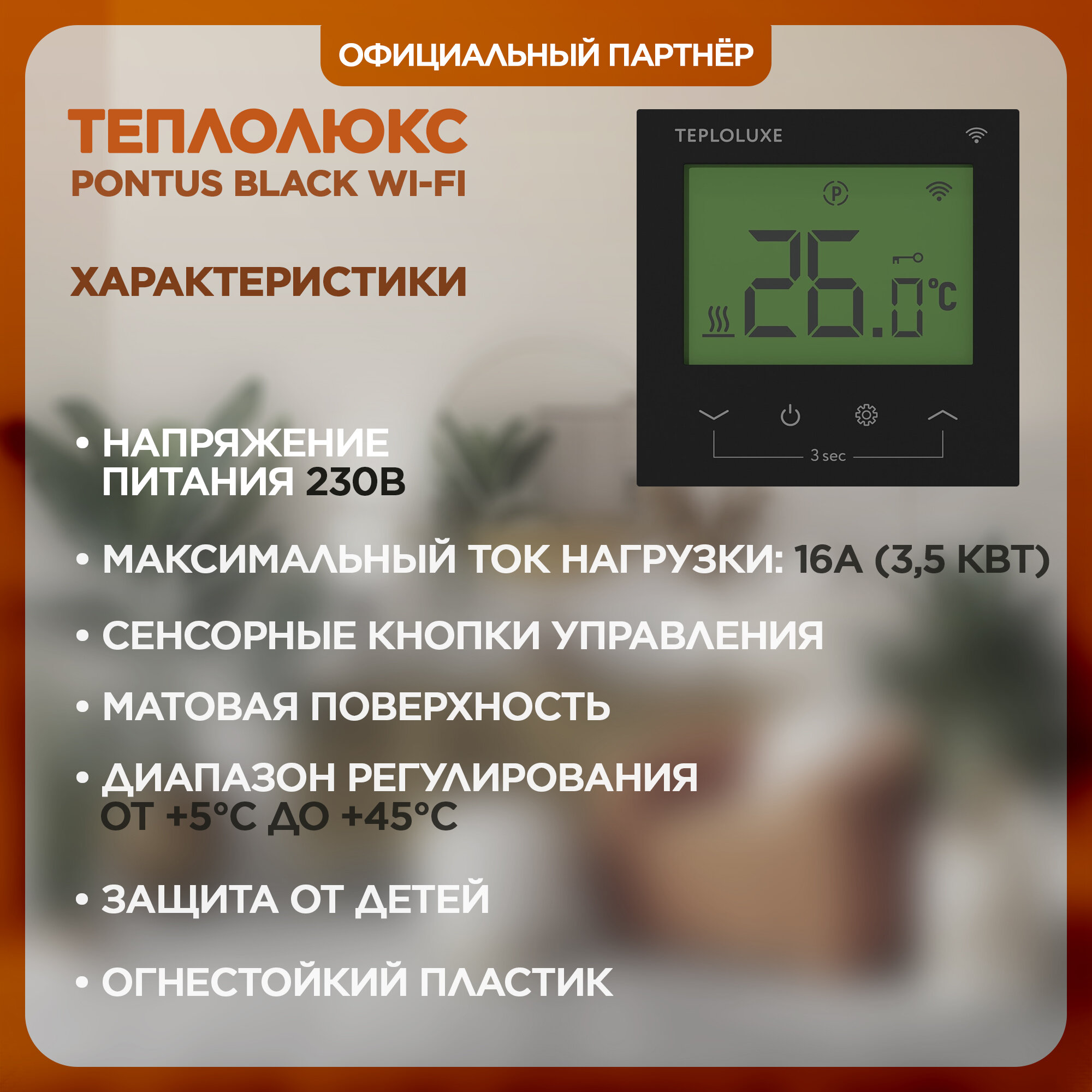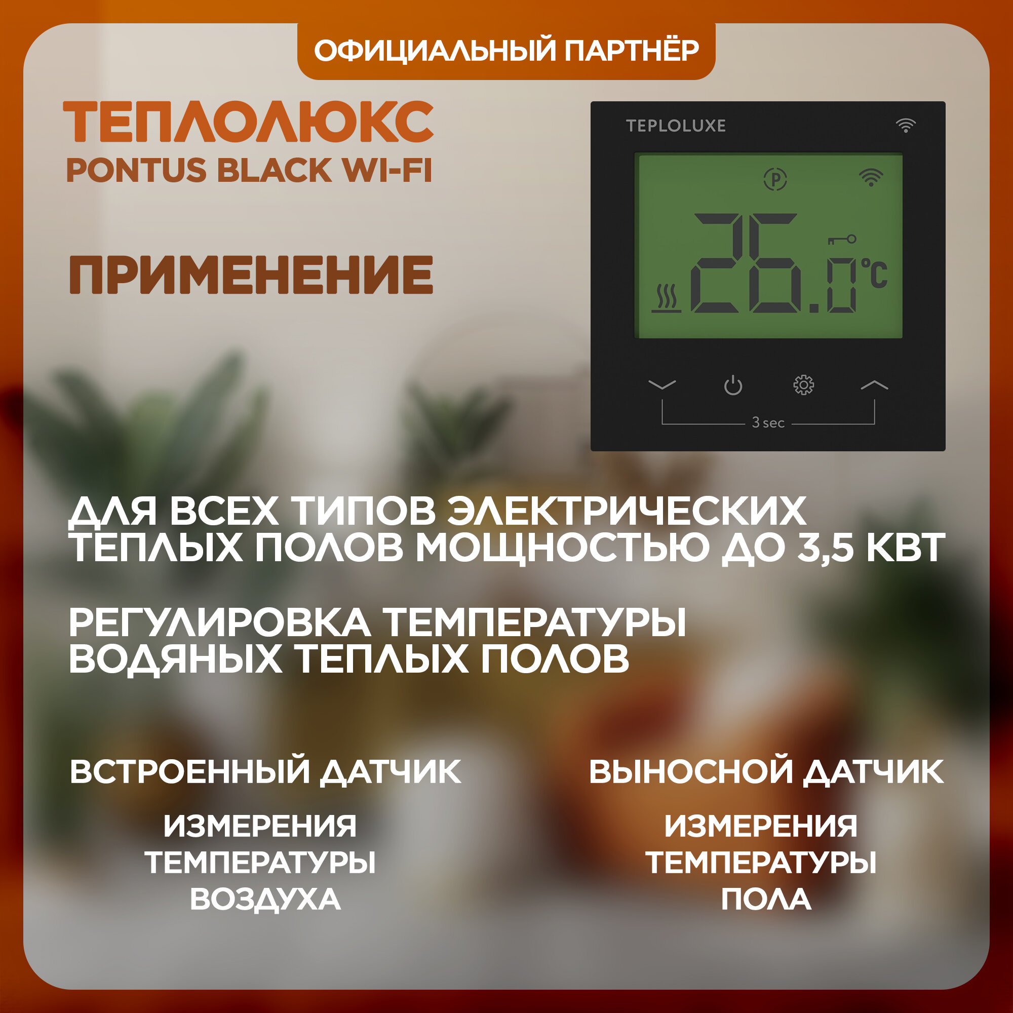 Терморегулятор для теплого пола Теплолюкс PONTUS Wi-Fi черный матовый информация: