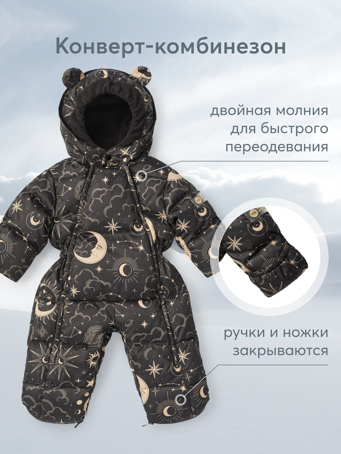 89083, Комбинезон для новорожденных зимний, комбинезон для мальчиков и девочек, опушка из меха енота, конверт в коляску, черный, рост 68-74 информация: