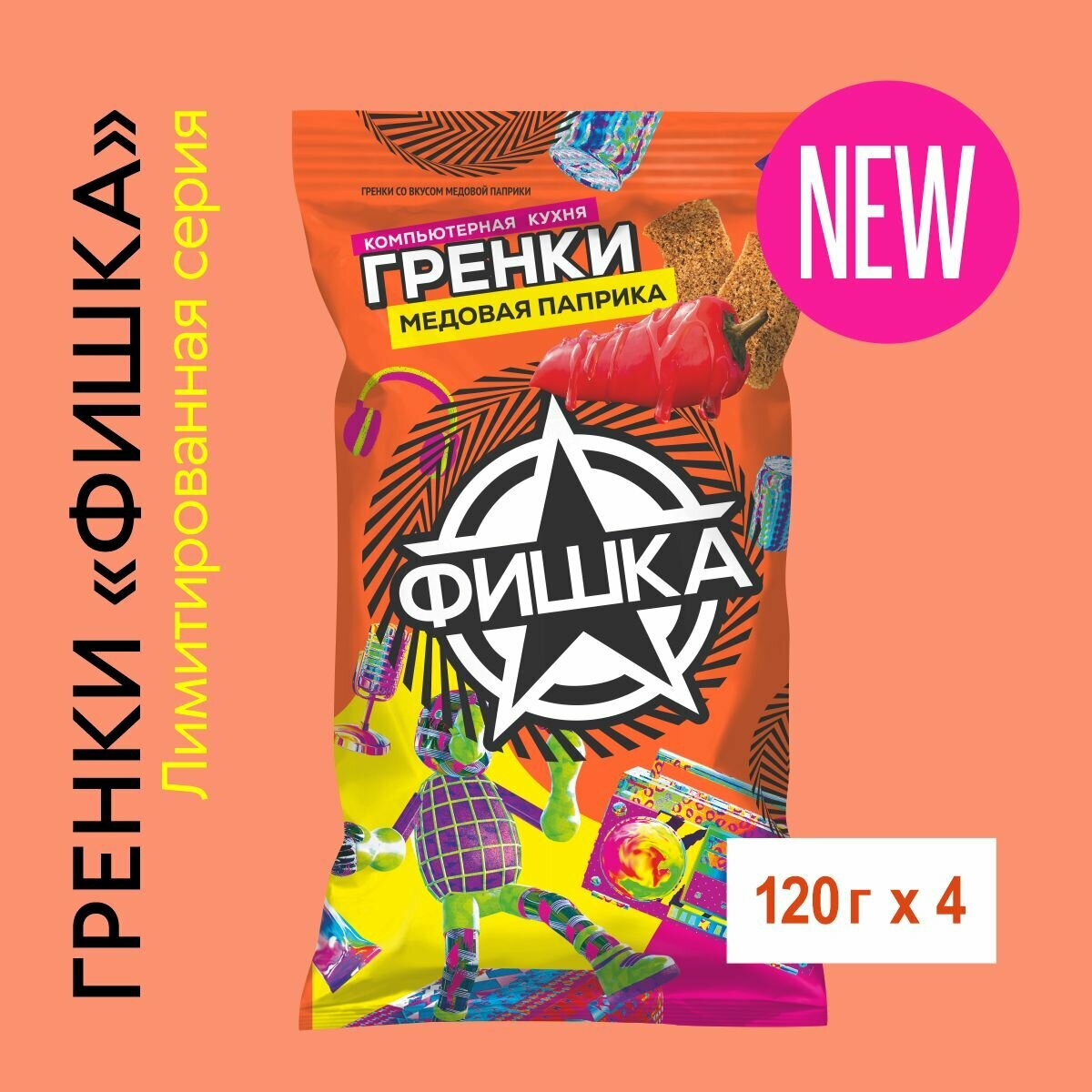 Гренки "Фишка" 120 г со вкусом медовой паприки, 4 шт. информация: