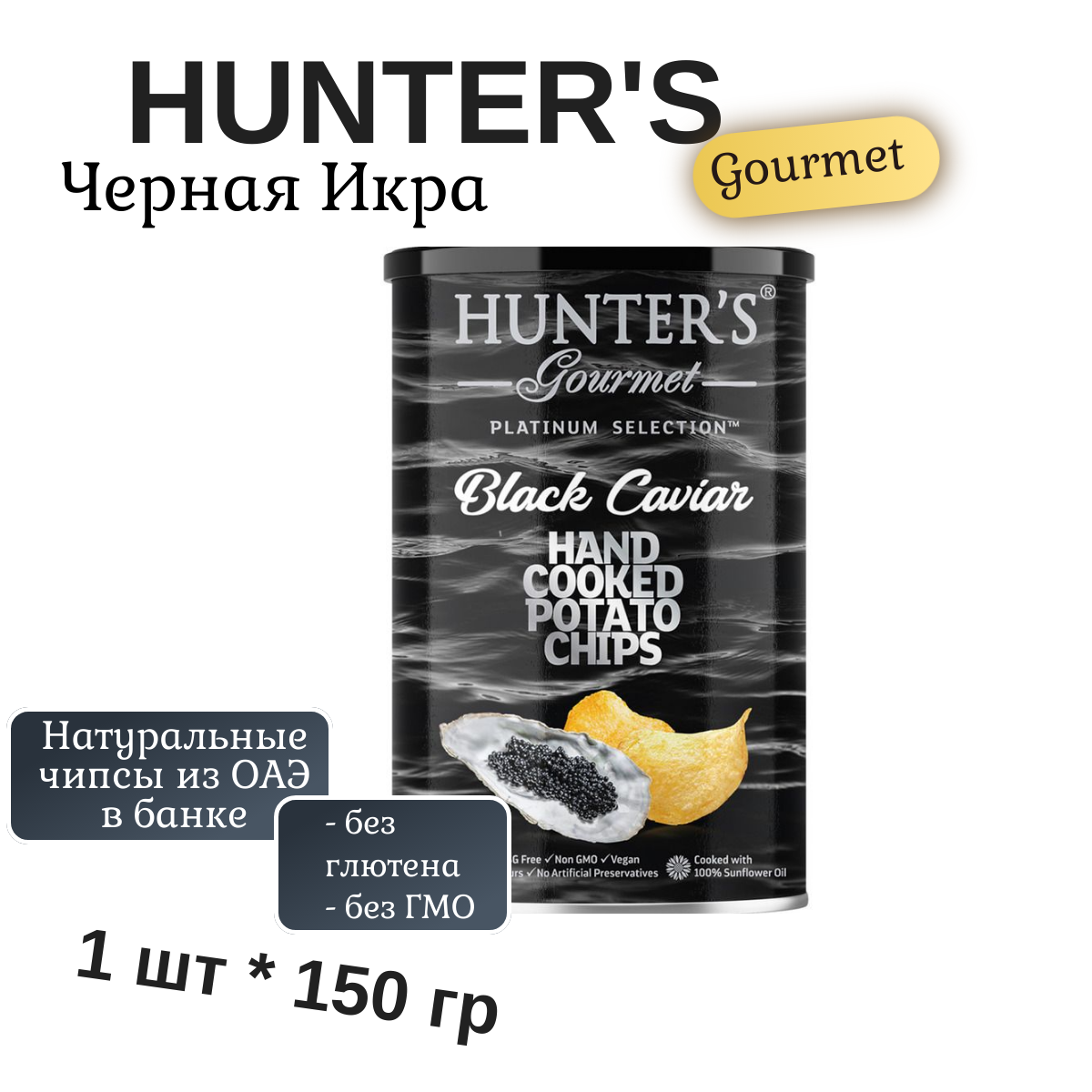 Чипсы картофельные натуральные Hunter's Gourmet Black Caviar (Хантерс Черная Икра), 150 гр информация: