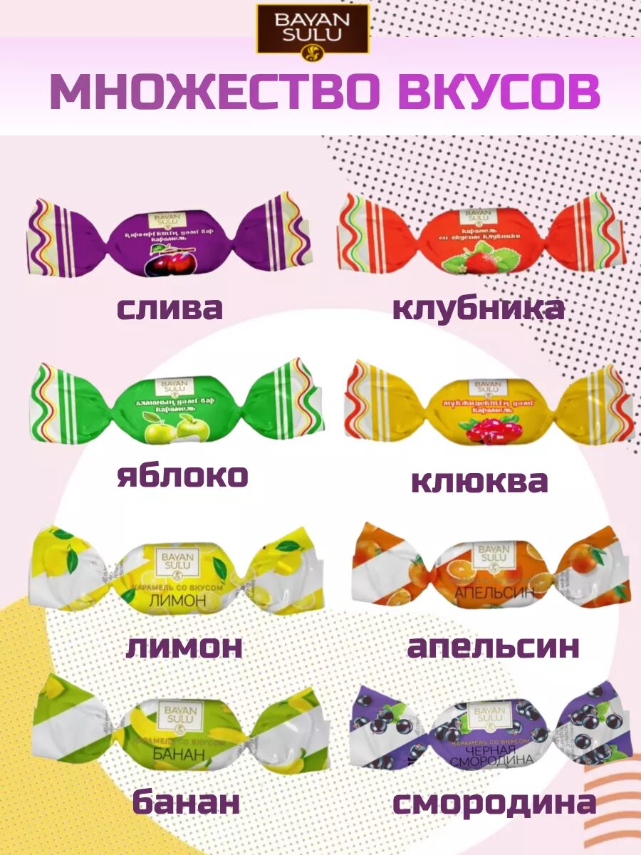 Карамель фруктовая с начинкой Баян Сулу ассорти 8 вкусов 2 кг информация: