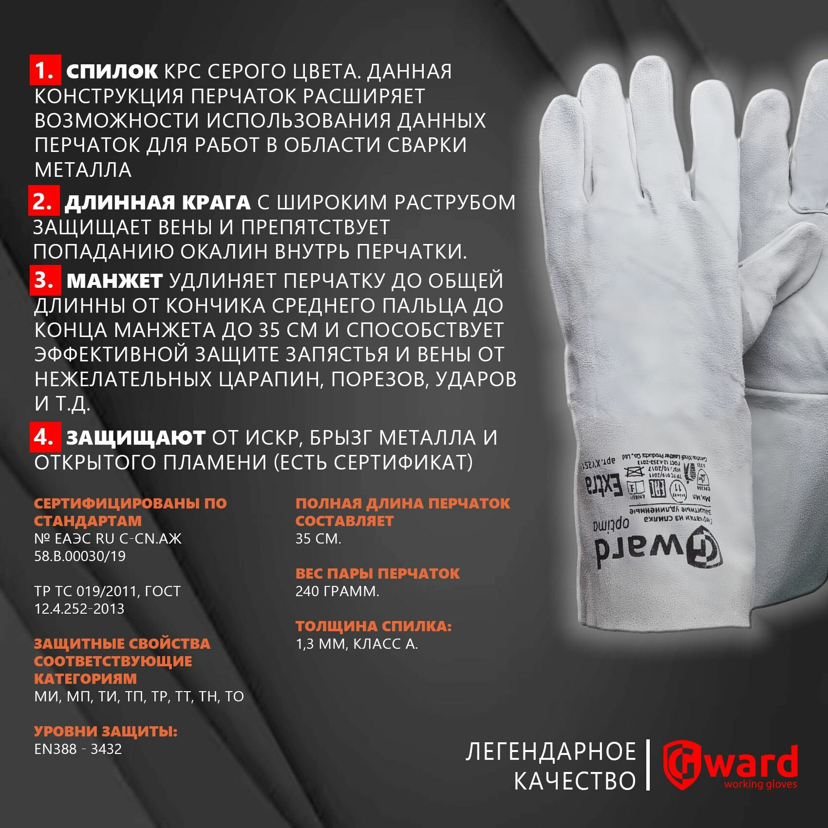 Отзывы на Краги сварщика, перчатки защитные, рабочие Gward Extra, размер 11 (XXL), серого цвета, без подкладки, 1 пара