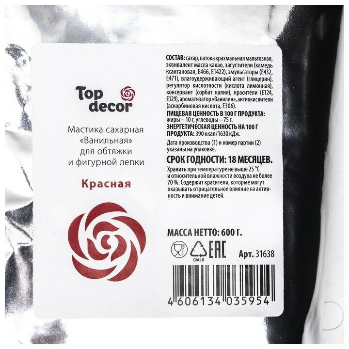 Мастика сахарная "Ванильная" Топ Декор красная 600 г для обтяжки торта и фигурной лепкиTop Decor