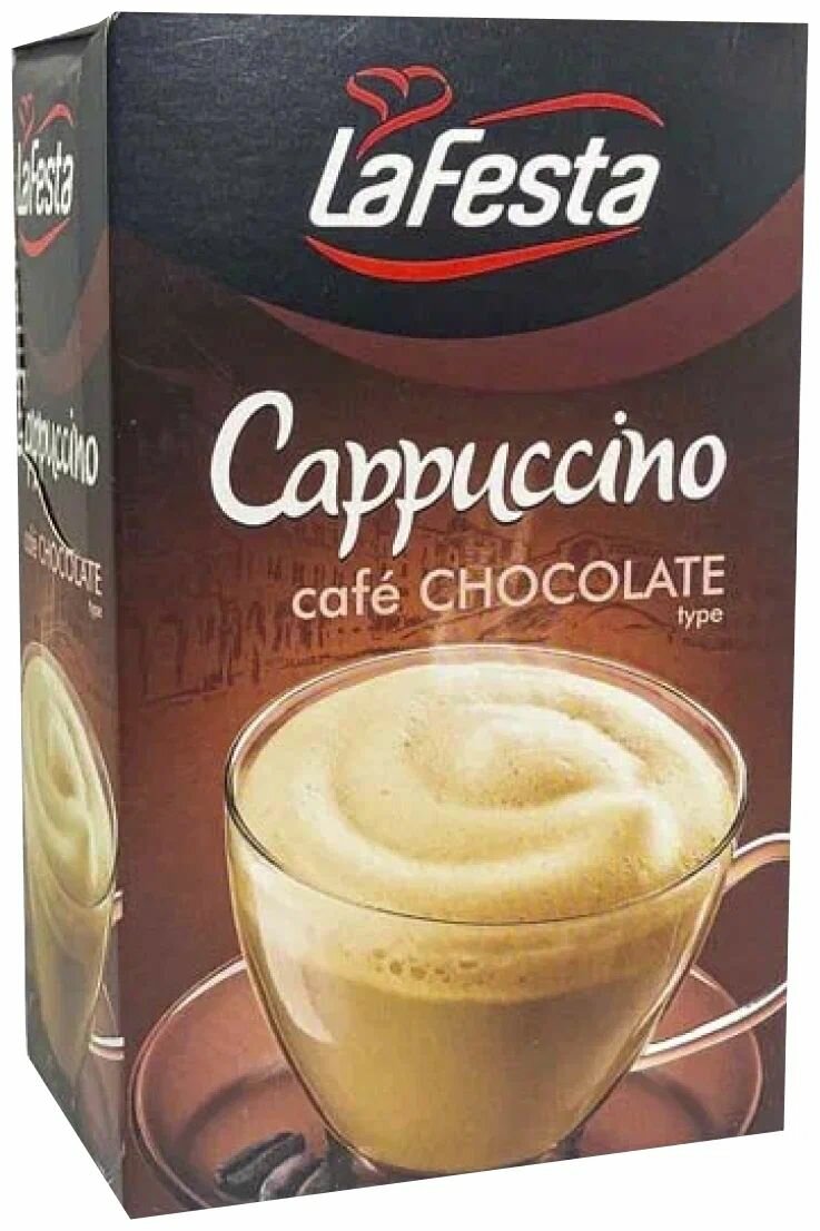 10 цен на Капучино La Festa со вкусом шоколада, напиток растворимый с натуральным кофе, 125 г (12,5 г х 10 шт)