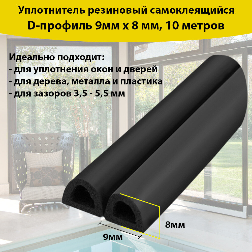 Отзывы на Уплотнитель самоклеящийся D-профиль 9*8 мм, черный, 10 метров . Утеплитель для дверей и окон. 4WALLS