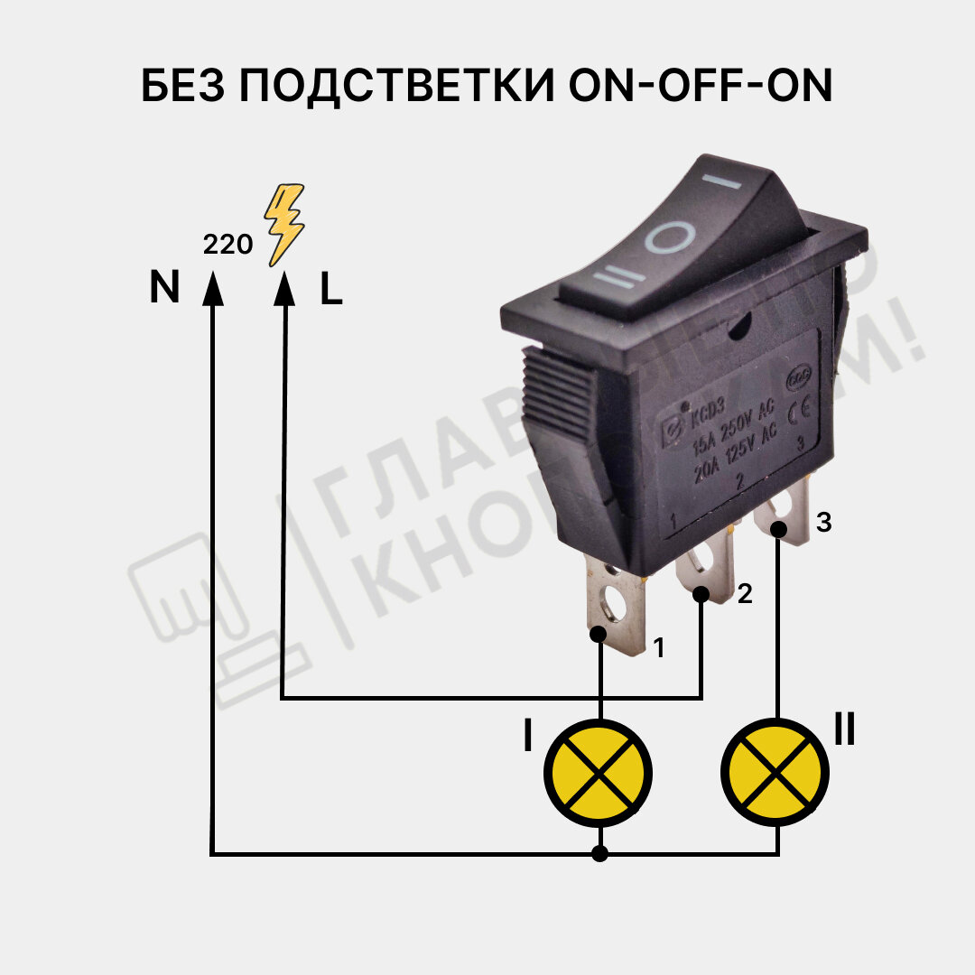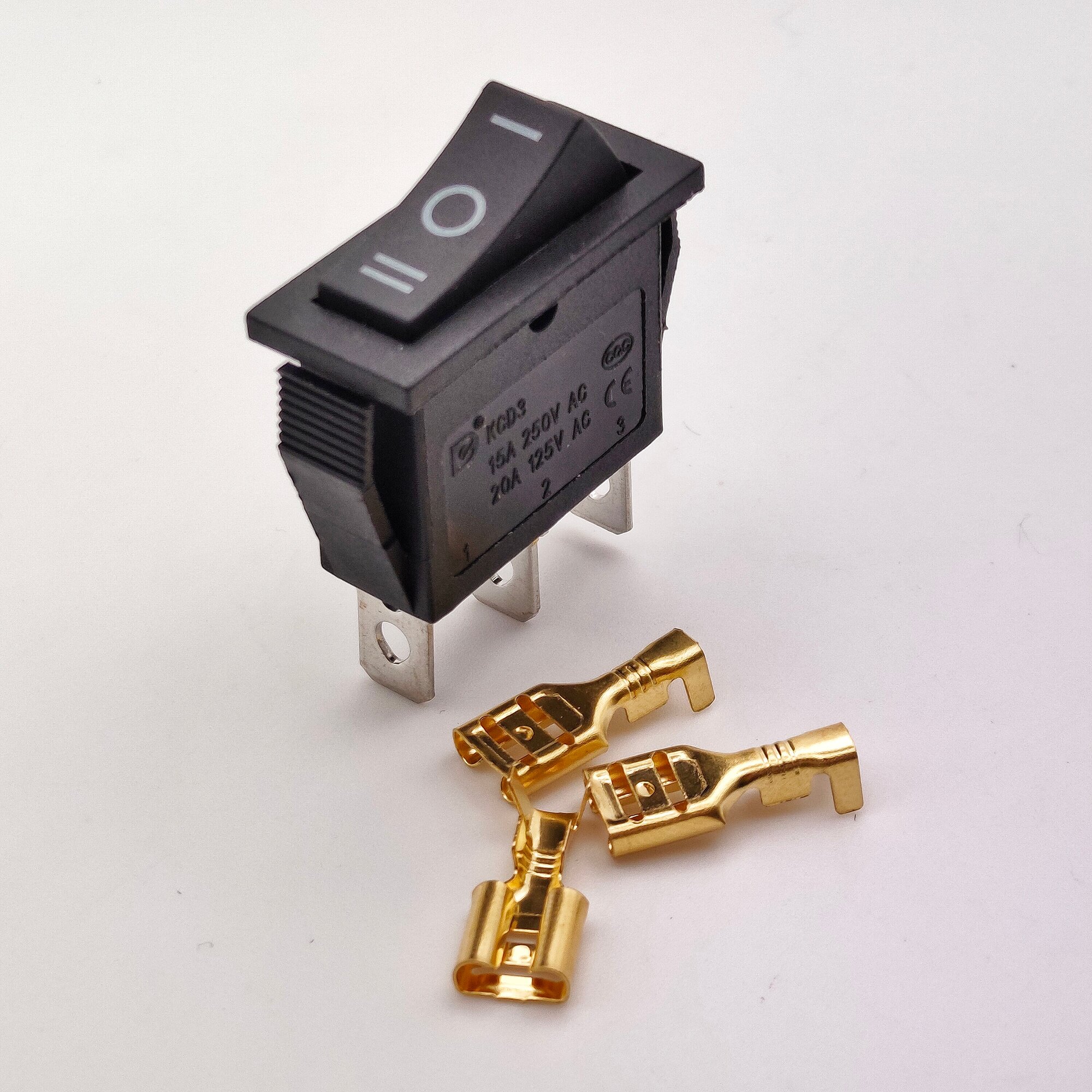Выключатель клавишный С нейтралью 250В 15А (3с) ON-OFF-ON черный KCD3 (+ клеммы и термоусадка) информация: