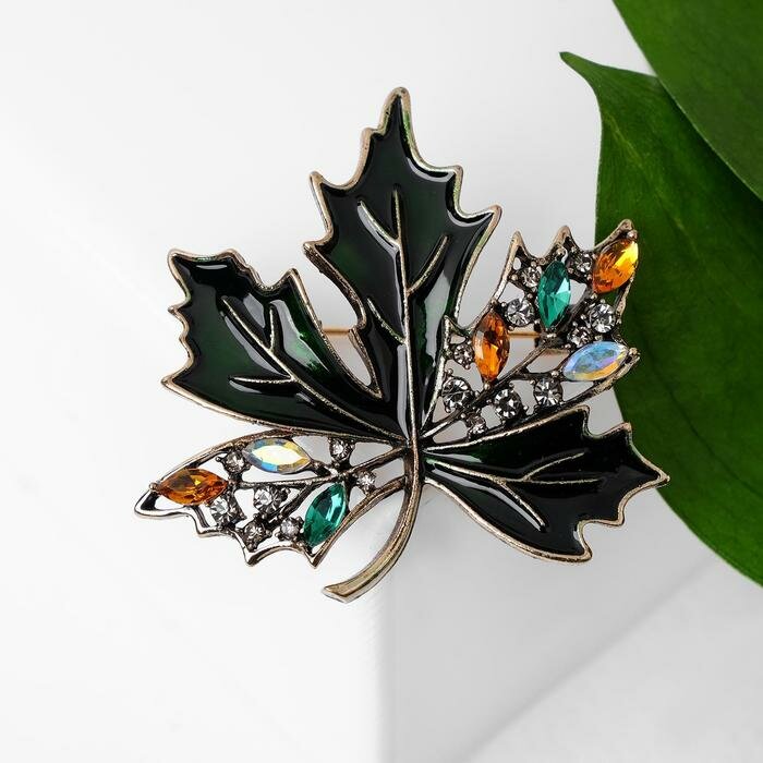 10 цен на Брошь «Лист кленовый» стеклянный, цвет зелёный в чернёном золоте