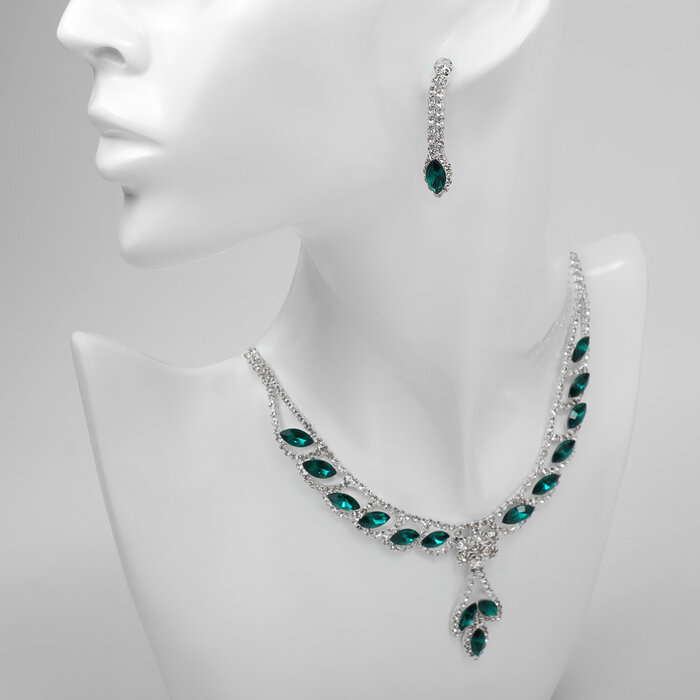 10 цен на Queen fair Набор 2 предмета: серьги, колье «Листопад» ромб, цвет изумрудно-белый в серебре, 45 см