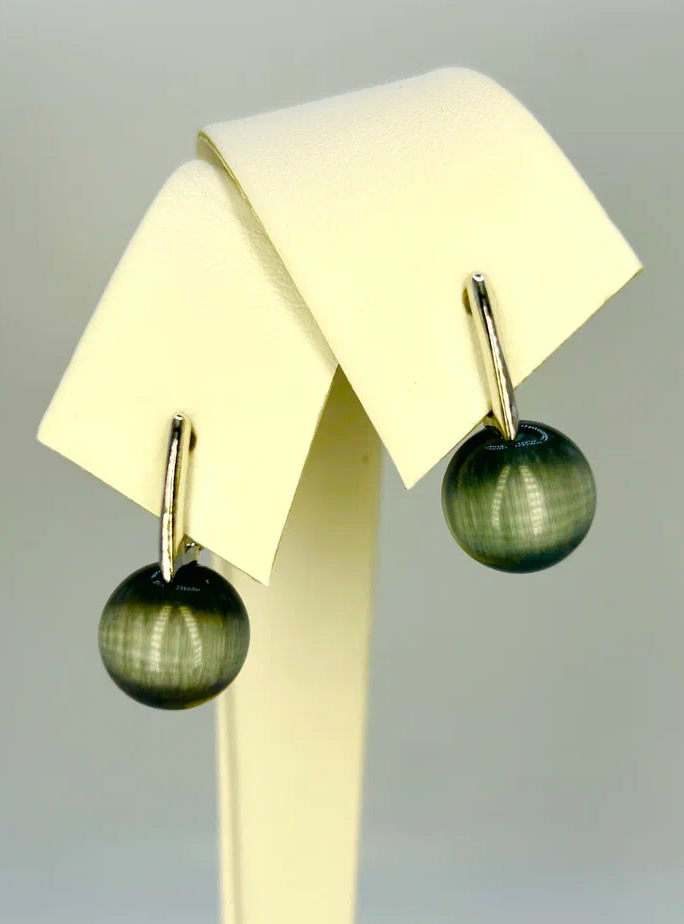 Серьги с серым кошачим глазом "Гири" серебро 925 Аргентум 1 210 ₽