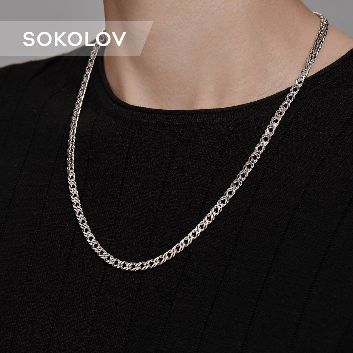 Цепь мужская SOKOLOV из серебра, плетение ромб двойной, 925 проба 968041002, размер 45 см 7 698 ₽