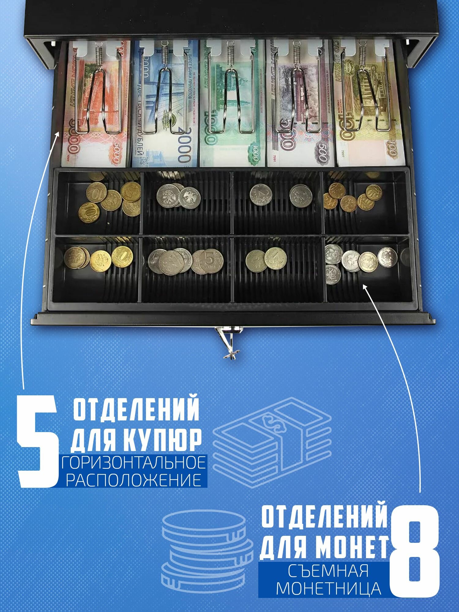 Отзывы на Денежный ящик FORT 5М, замок механический, без подключения к кассе, черный
