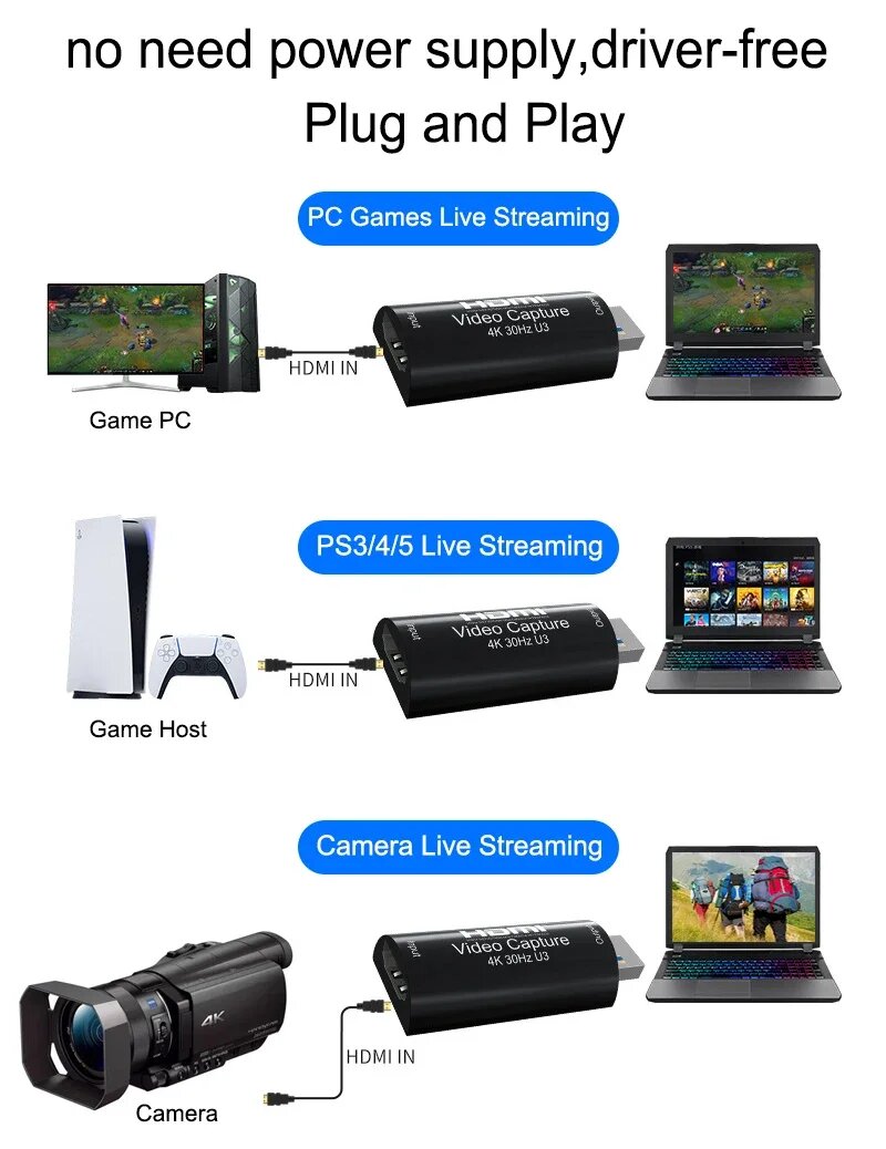 LccKaa USB 3,0 карта видеозахвата 4K HDMI-совместимая с USB 3.0 Type-C игровой захват запись для переключателя Xbox PS5/4 прямая трансляция