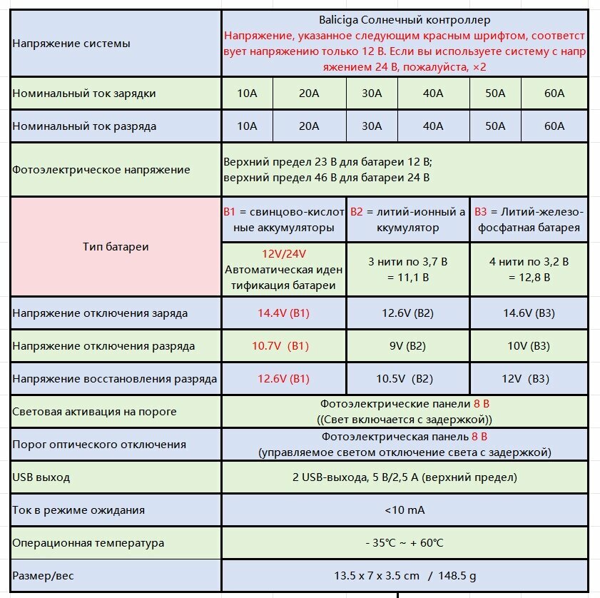 Baliciga Контроллер заряда солнечной батареи 30А, 12/24 в, Три режима работы от батареи информация: