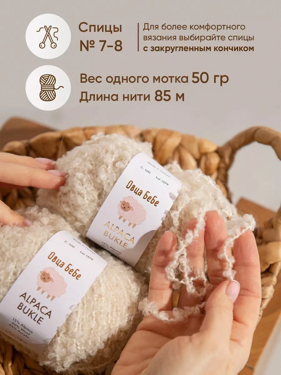 Отзывы на Пряжа для вязания Буклированная Alpaca Bukle, цвет жемчужный (набор из 2шт)