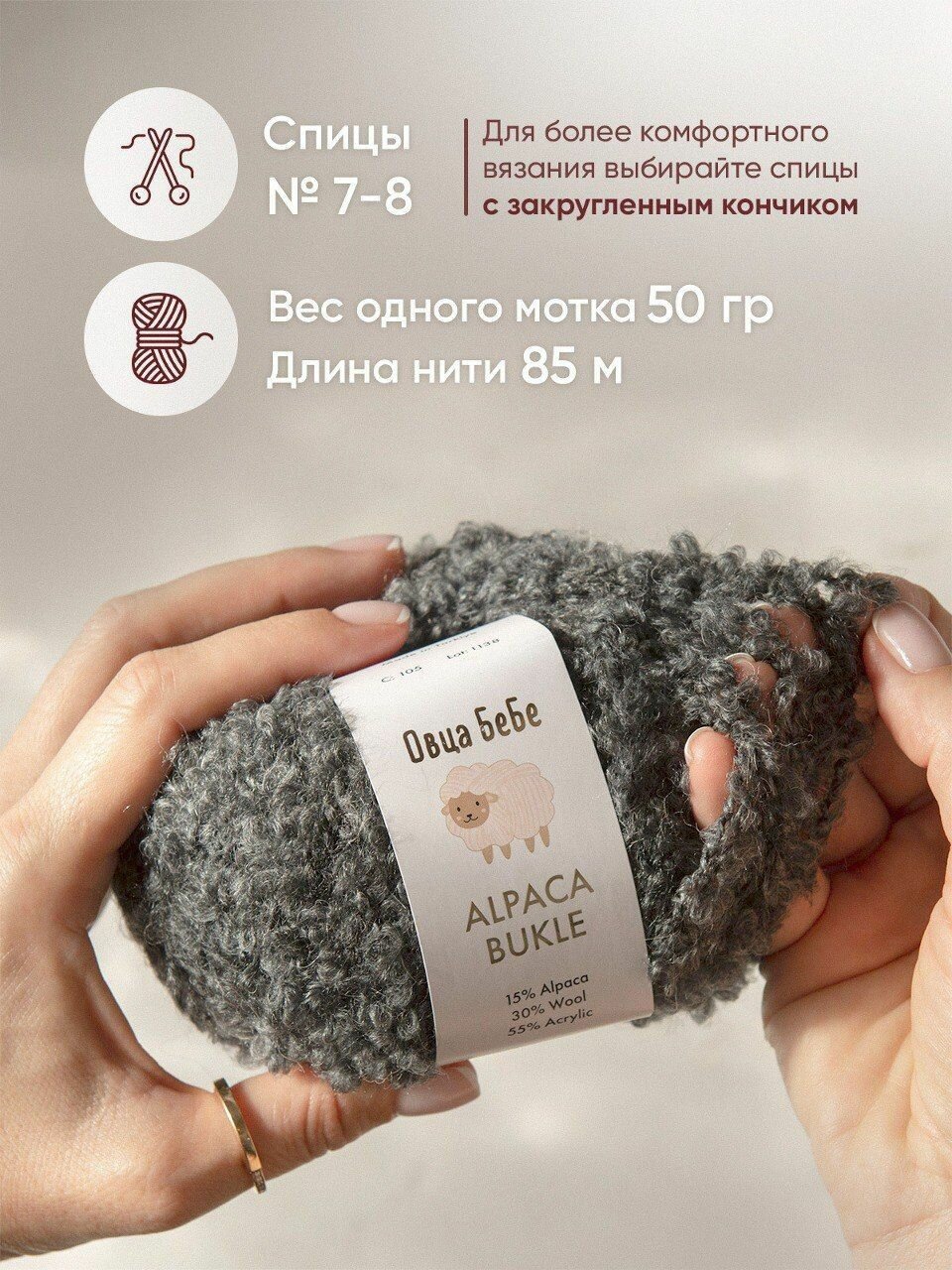 Пряжа для вязания Буклированная Alpaca Bukle, цвет графитовый серый (набор из 2шт) информация: