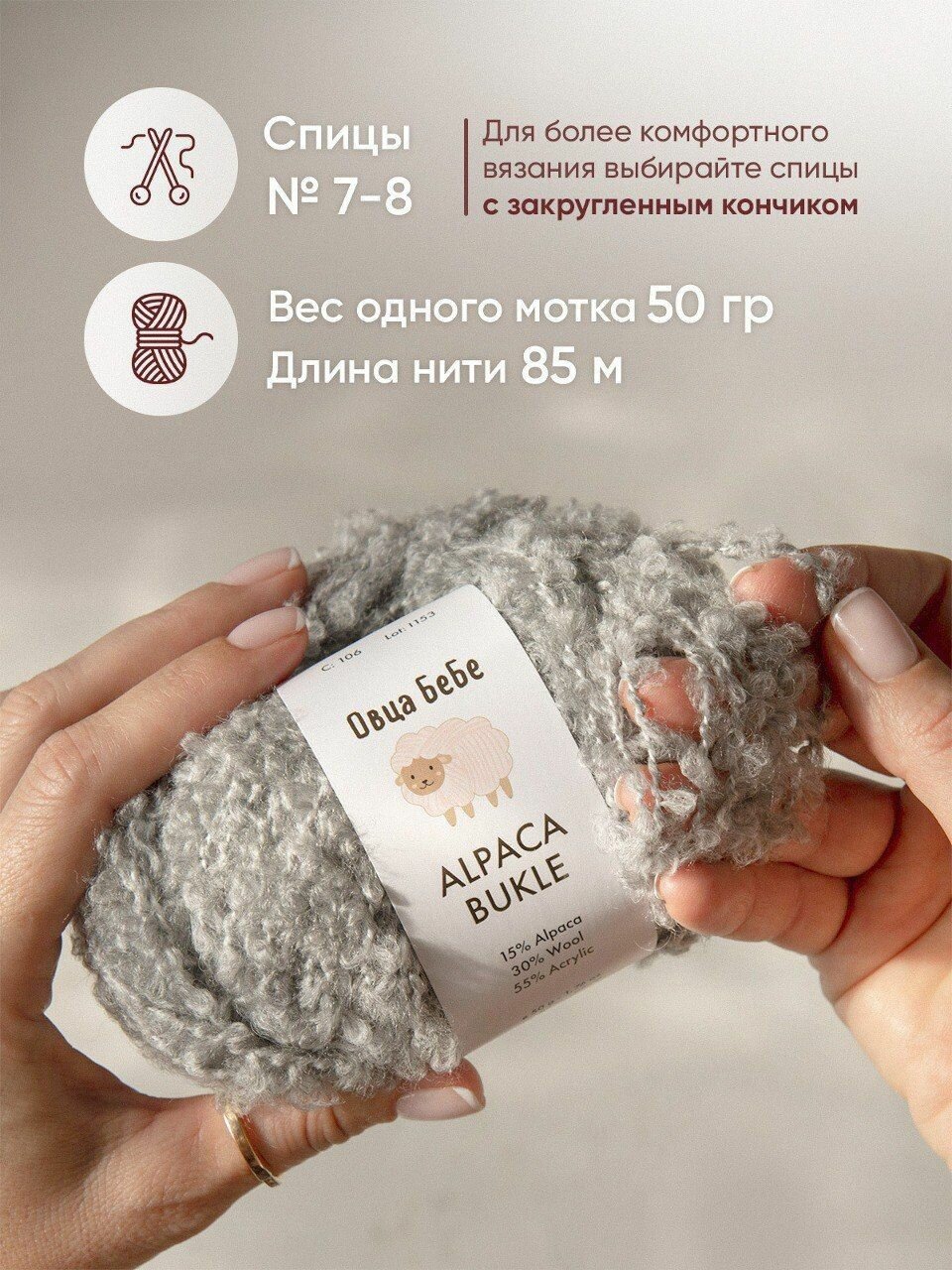Отзывы на Пряжа для вязания Буклированная Alpaca Bukle, цвет серебристо-серый (набор из 2шт)
