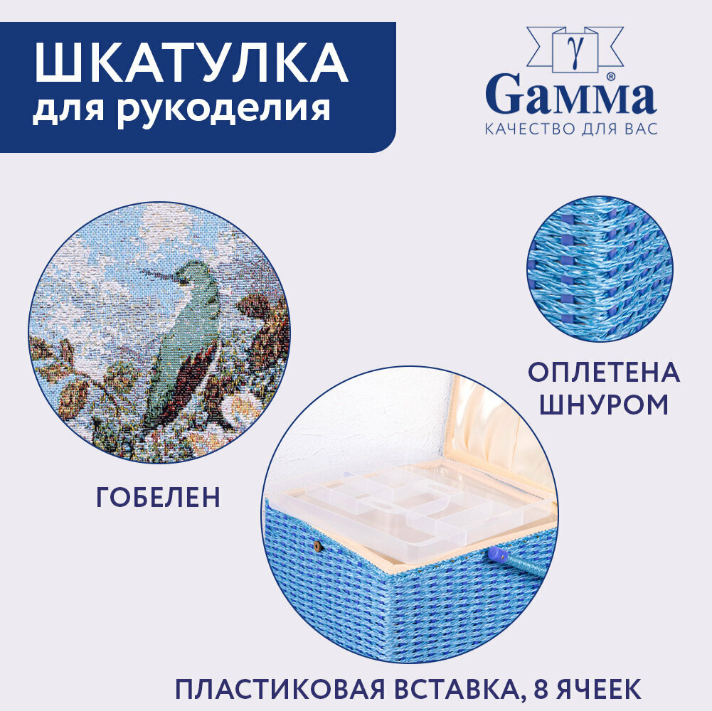 Шкатулка для швейных принадлежностей "Gamma" SBJ-011, 31.5x31.5x19 см, Колибри в цветах информация:
