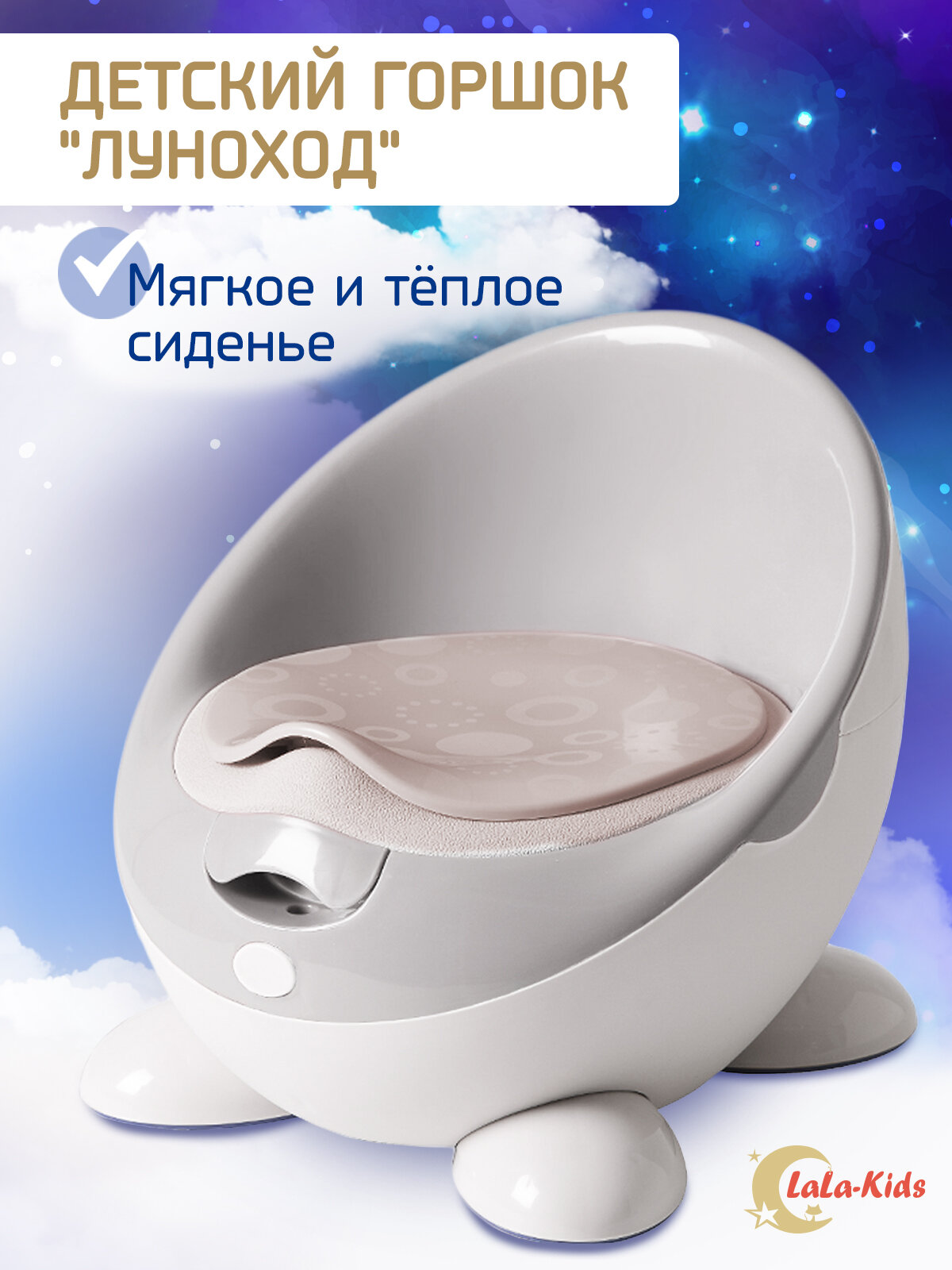 Горшок детский с мягким сиденьем и крышкой "Луноход", LaLa-Kids белый 3 100 ₽