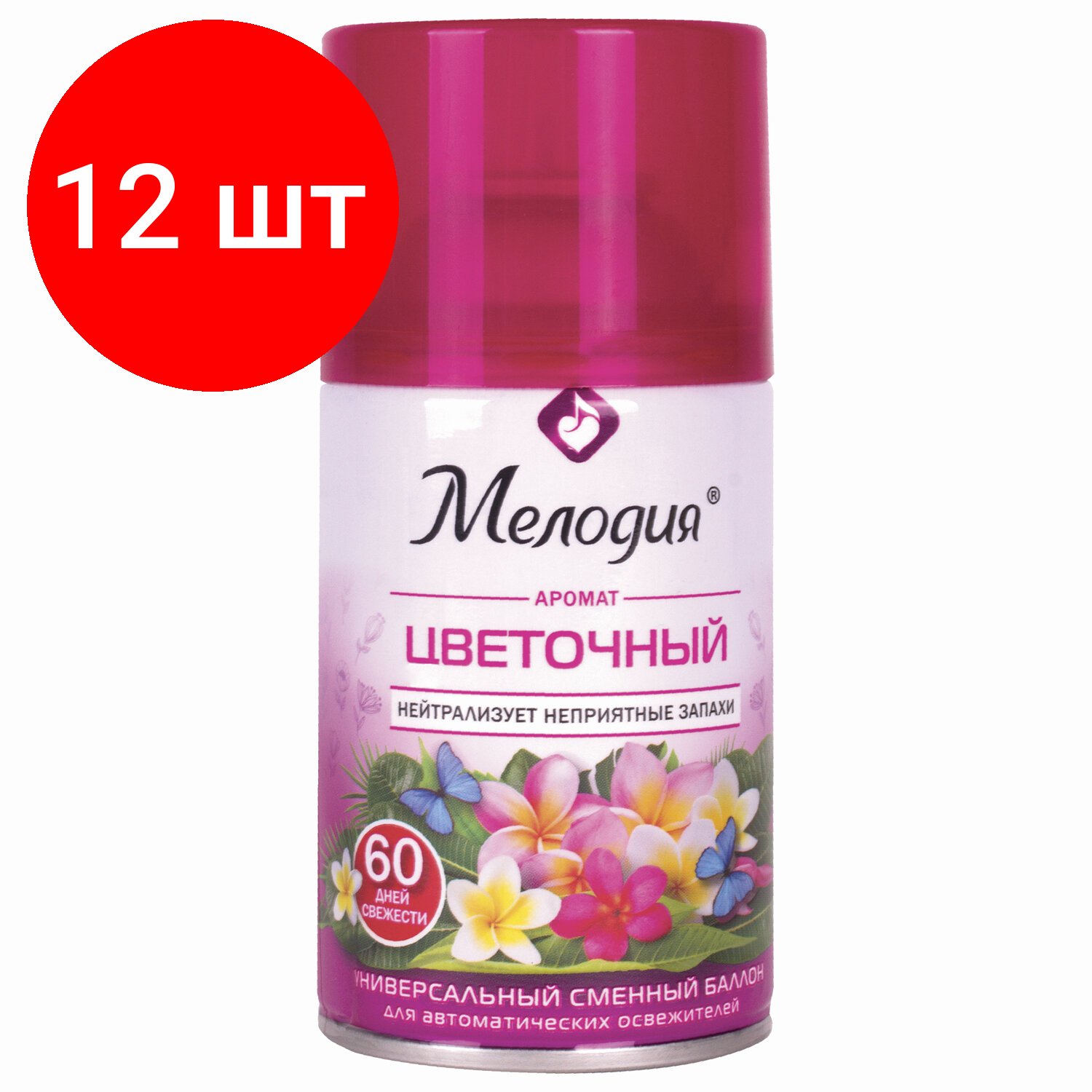 Комплект 12 шт, Сменный баллон 250 мл мелодия "Цветочный", для автоматических освежителей, универсальный, 605230 информация: