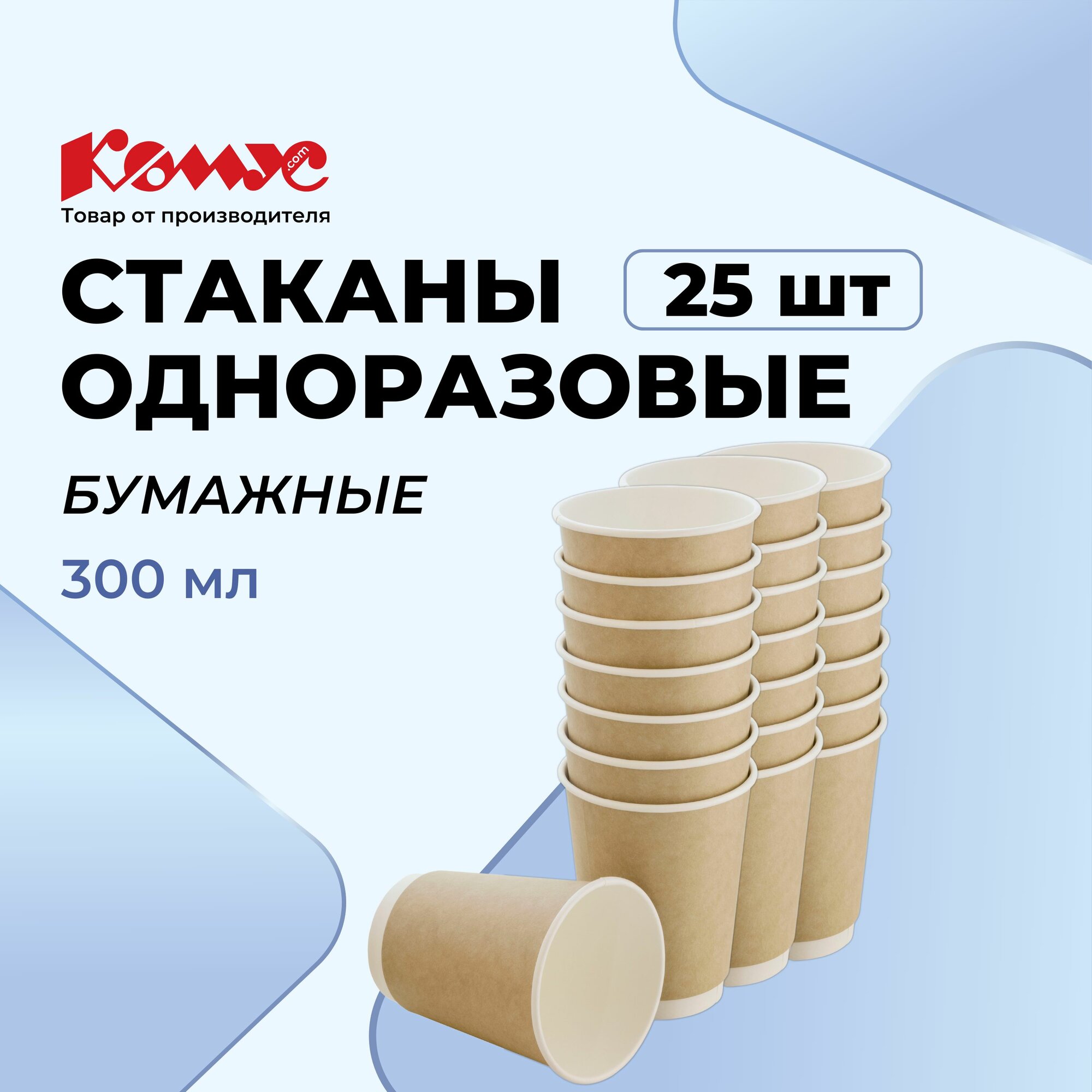 Стаканы одноразовые бумажные Комус, для горячих напитков, 300 мл, 25 штук, коричневые информация: