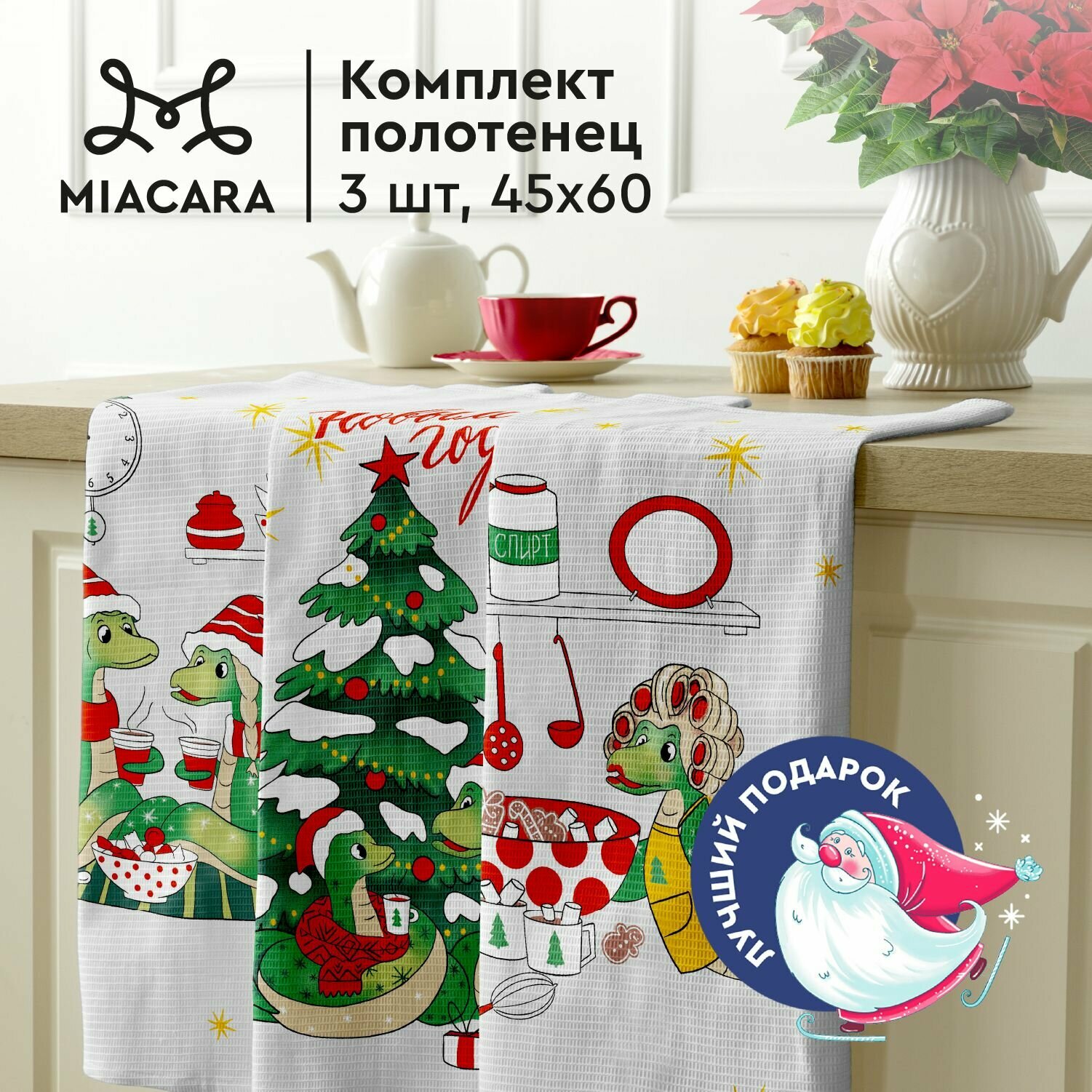Кухонные полотенца вафельные 45х60 (3 шт.) Mia Cara рис 30679-1 New Year's snake 337 ₽