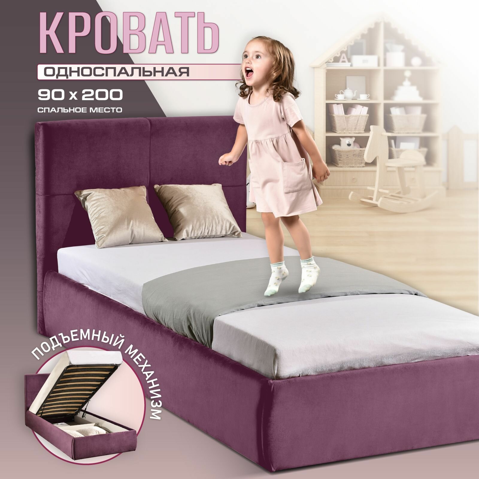 Отзывы на Детская односпальная кровать 90х200 см Прима мод.1, подростковая для дома и спальни, вельвет лиловый, АМИ Мебель