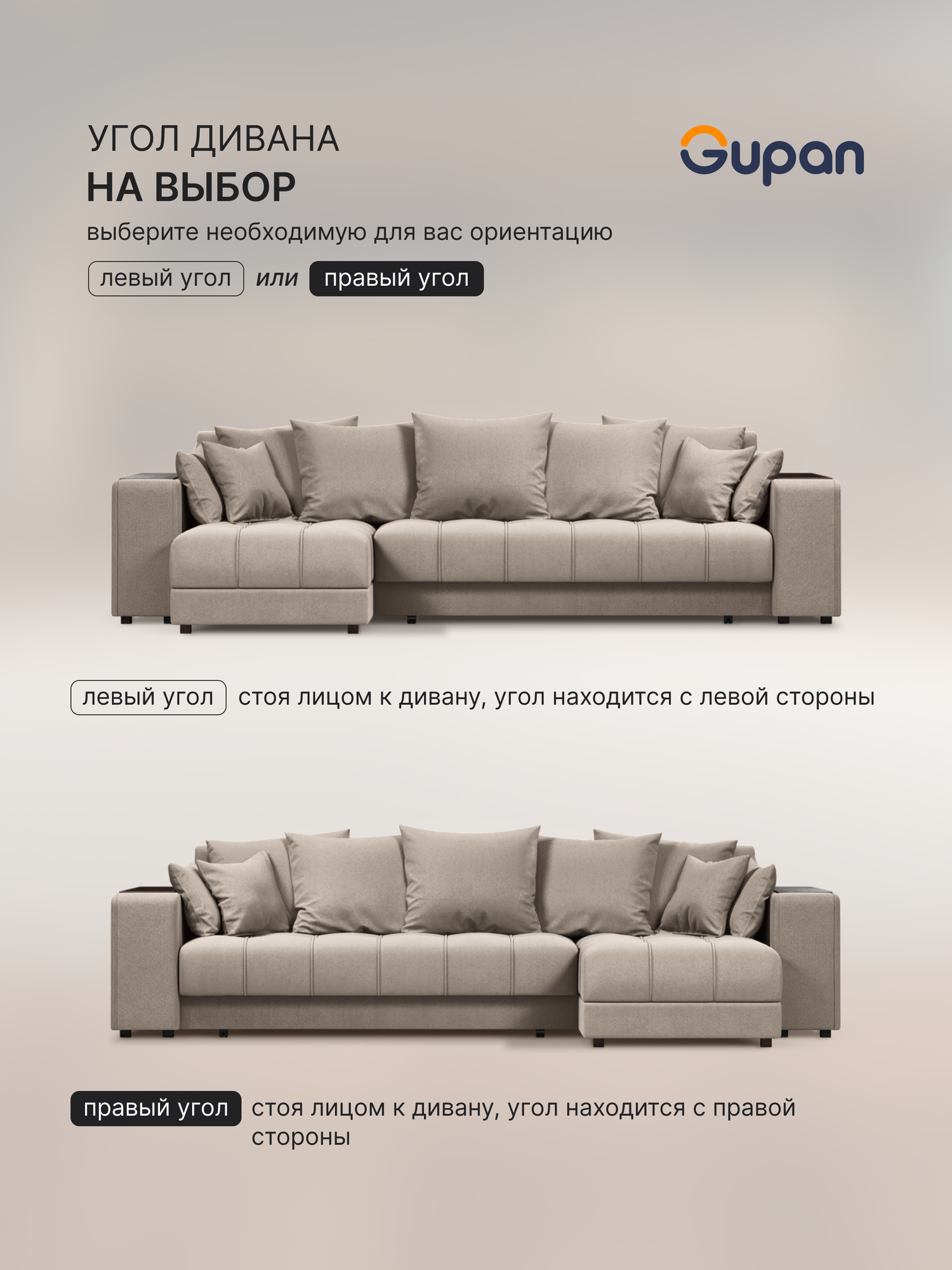 Отзывы на Диван угловой Gupan Дубай Велюр Amigo Cream, раскладной, механизм еврокнижка, беспружинный, с ящиком для белья