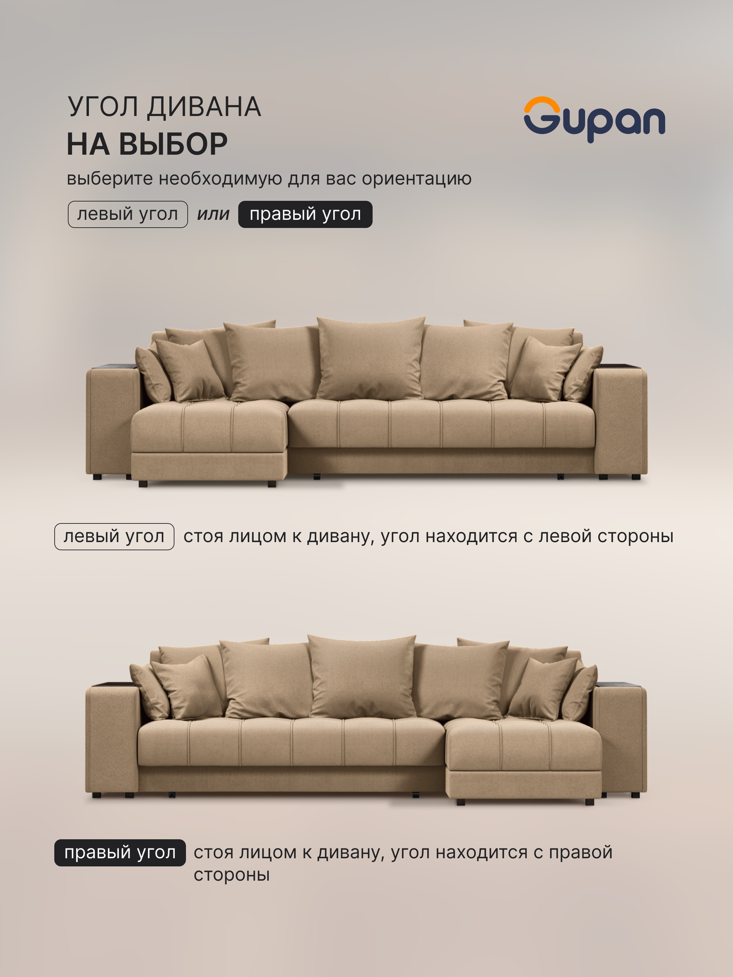 10 цен на Диван угловой Gupan Дубай Велюр Amigo Beige, раскладной, механизм еврокнижка, беспружинный, с ящиком для белья