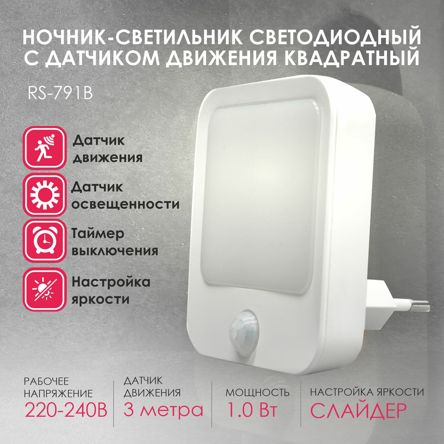 10 цен на RS-791B Ночник светодиодный с датчиком движения RocketSocket, Вкл/Выкл/Авто, Ливолотач