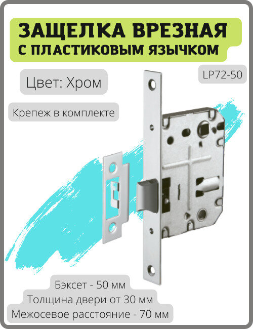 Замок для межкомнатных дверей / защелка врезная LP72-50 CP Хром информация: