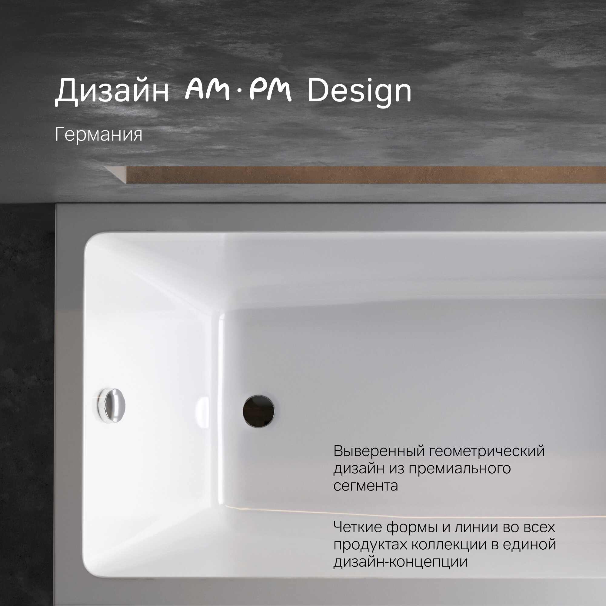 Ванна акриловая AM.PM Func W84A-160-070W-A 160x70 см, полка для хранения, декоративная заглушка слива, усиленный корпус, гарантия 15 лет