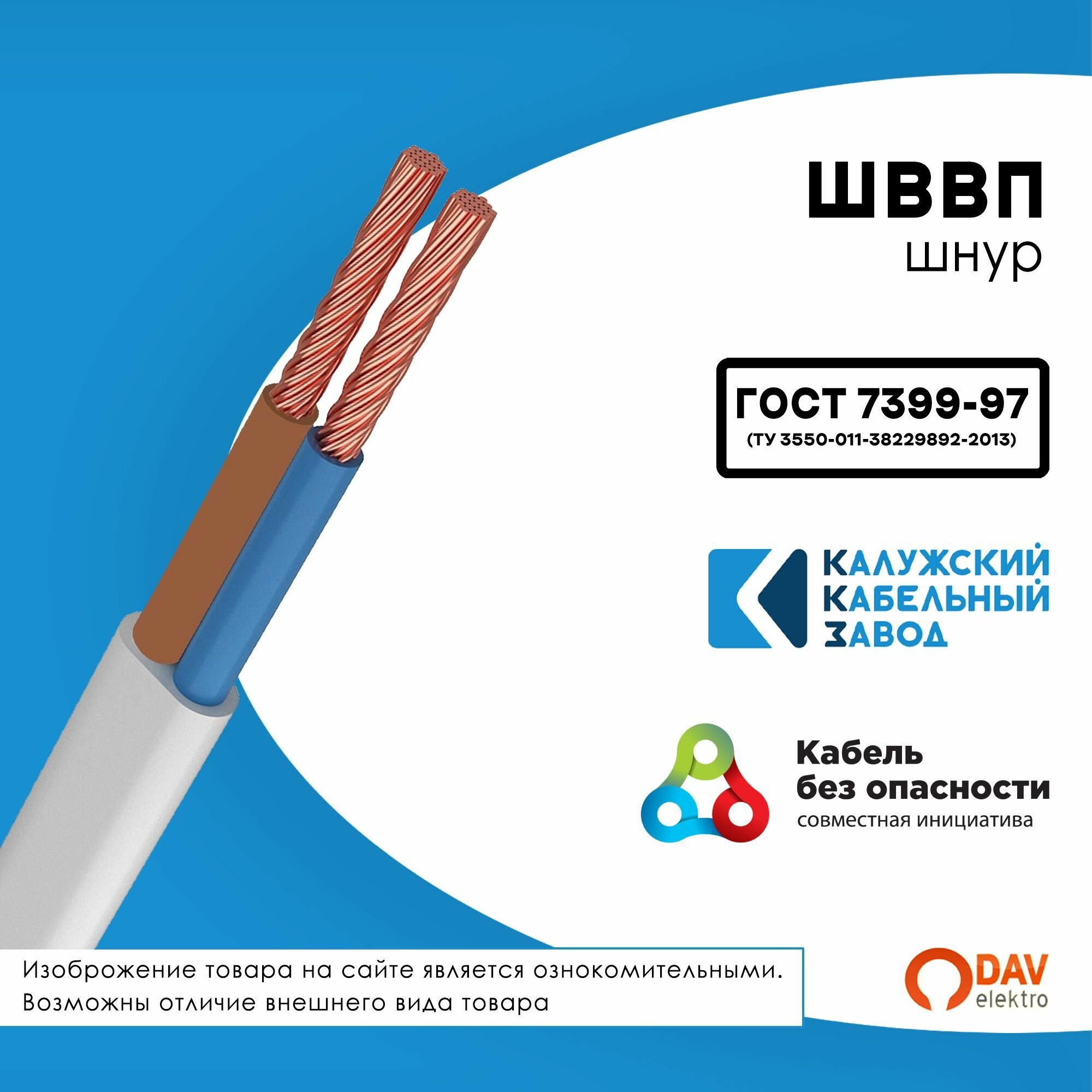 Провод ШВВП 2х0.75 25метров Белый Калужский кабельный завод ГОСТ информация: