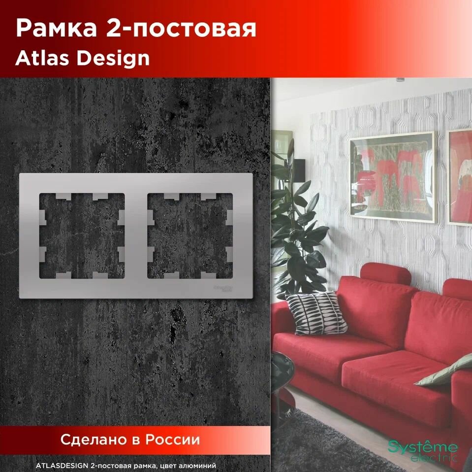 Рамка электроустановочная Systeme Electric (Schneider Electric) AtlasDesign, 2 пост., алюминий, ATN000302 329 ₽