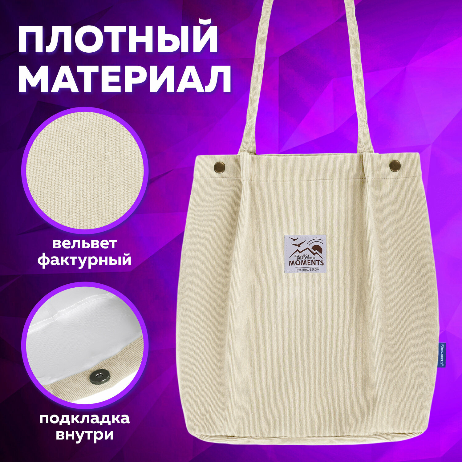 Отзывы на Сумка шоппер женская через плечо, шопер на кнопке с карманом Brauberg Moments, вельвет, бежевая, 271906