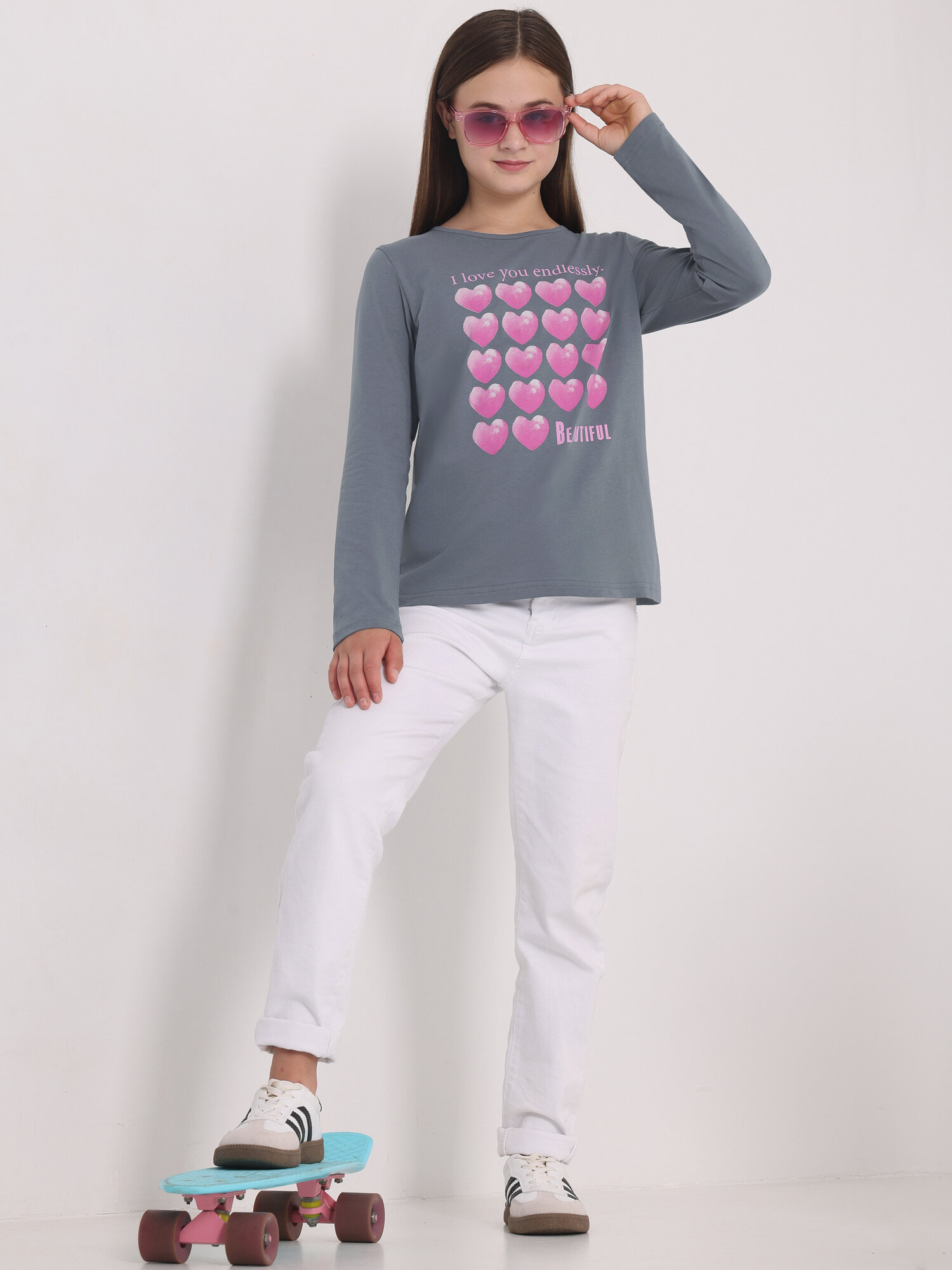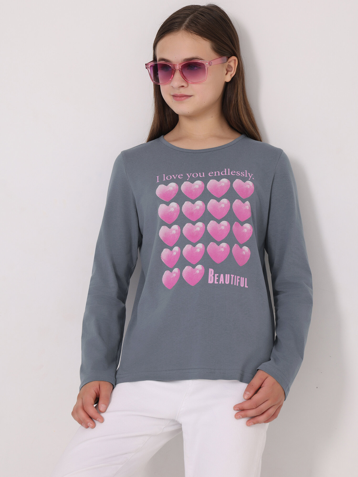 Лонгслив для девочки подростка с принтом хлопок 100% Апрель 1ДДЛД4192001/1119/2341/*/3488/*/*/* серый 80-152 информация: