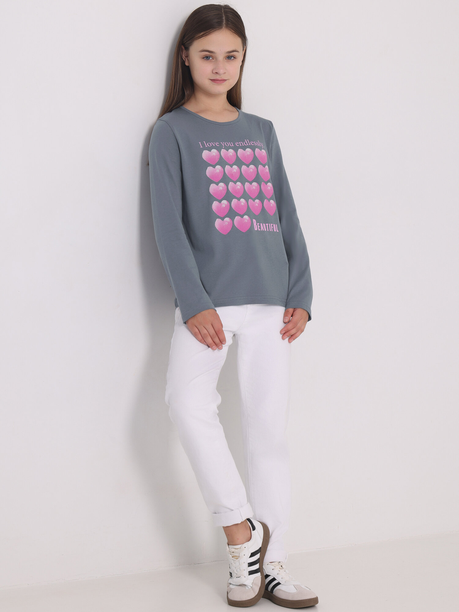 Лонгслив для девочки подростка с принтом хлопок 100% Апрель 1ДДЛД4192001/1119/2341/*/3488/*/*/* серый 88-164 информация: