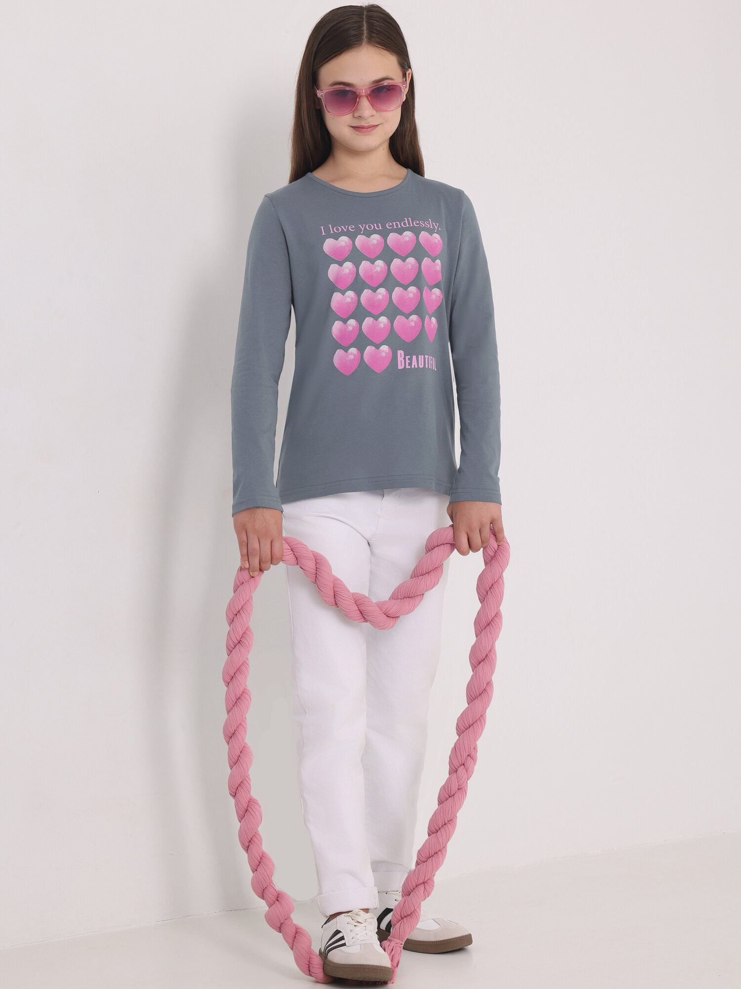 10 цен на Лонгслив для девочки подростка с принтом хлопок 100% Апрель 1ДДЛД4192001/1119/2341/*/3488/*/*/* серый 88-164