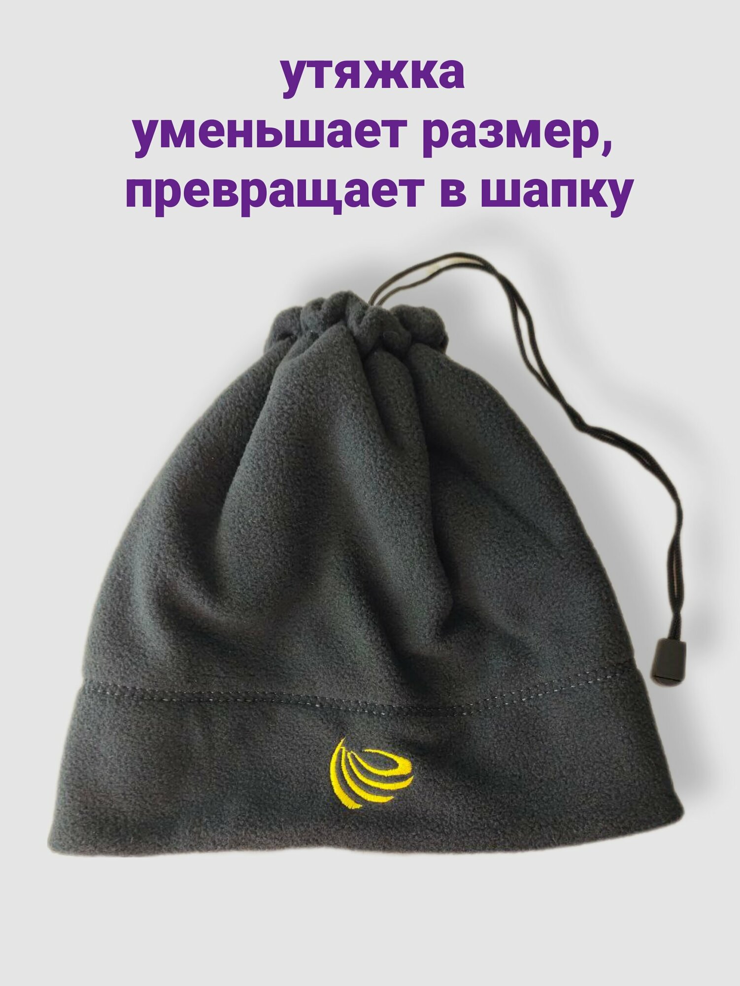 шапка-шарф флисовая, двусторонняя, спортивная теплая, бафф,, серо-чёрный торнадо 897 ₽