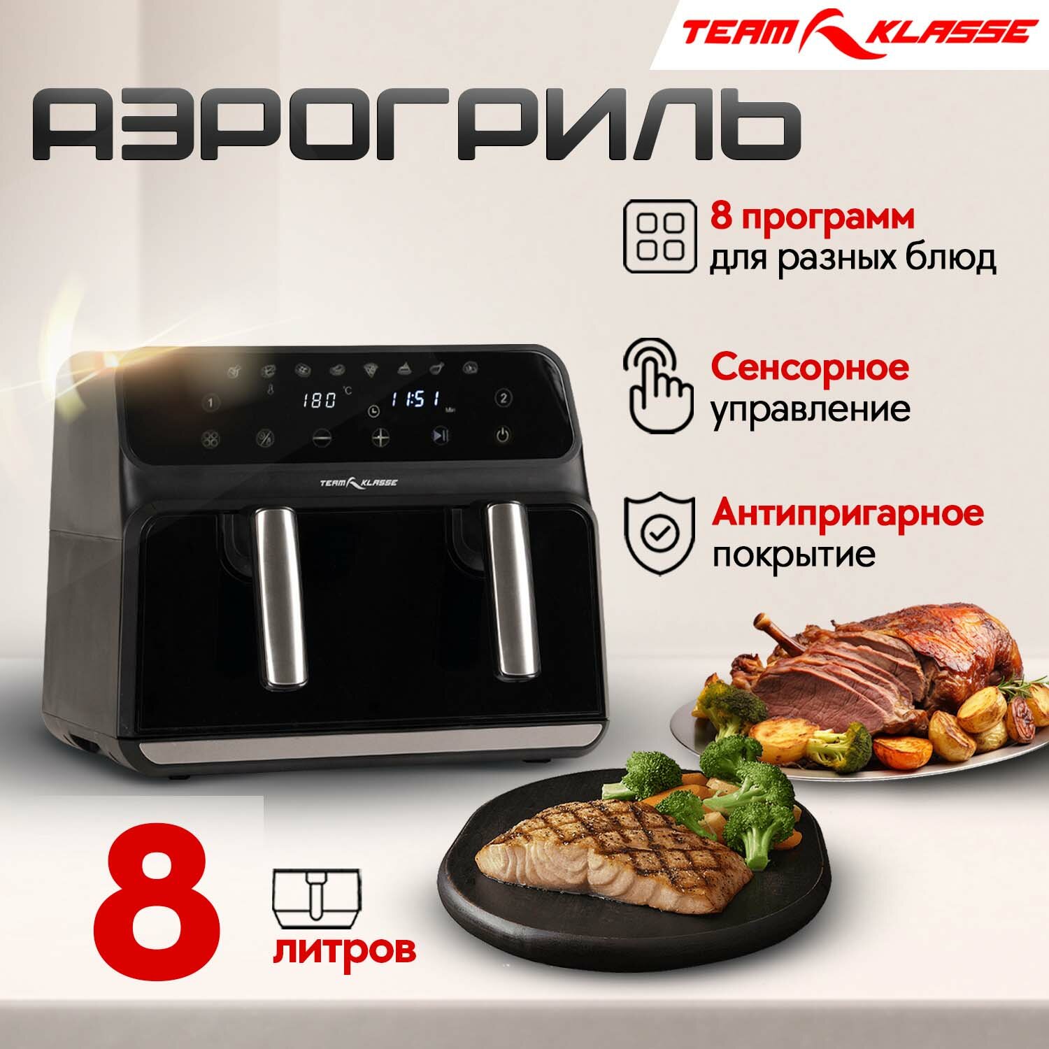 10 цен на Аэрогриль Team Klasse 802T аэрофритюрница, решетка, 1700 Вт и 8 программ, объем 8 л, приготовление без масла до 200 градусов, с антипригарным покрытием, таймер, цвет черный