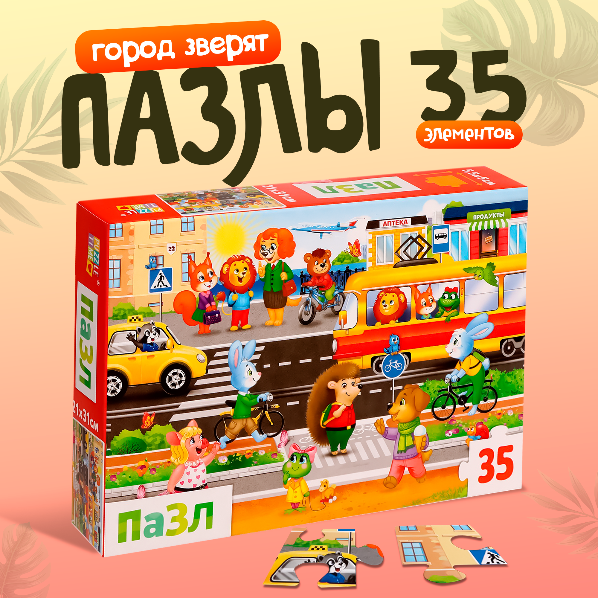 10 цен на Пазлы "Город зверят", 35 элементов, размер детали 5,5х4,5 см, размер поля 30х21 см, Puzzle Time