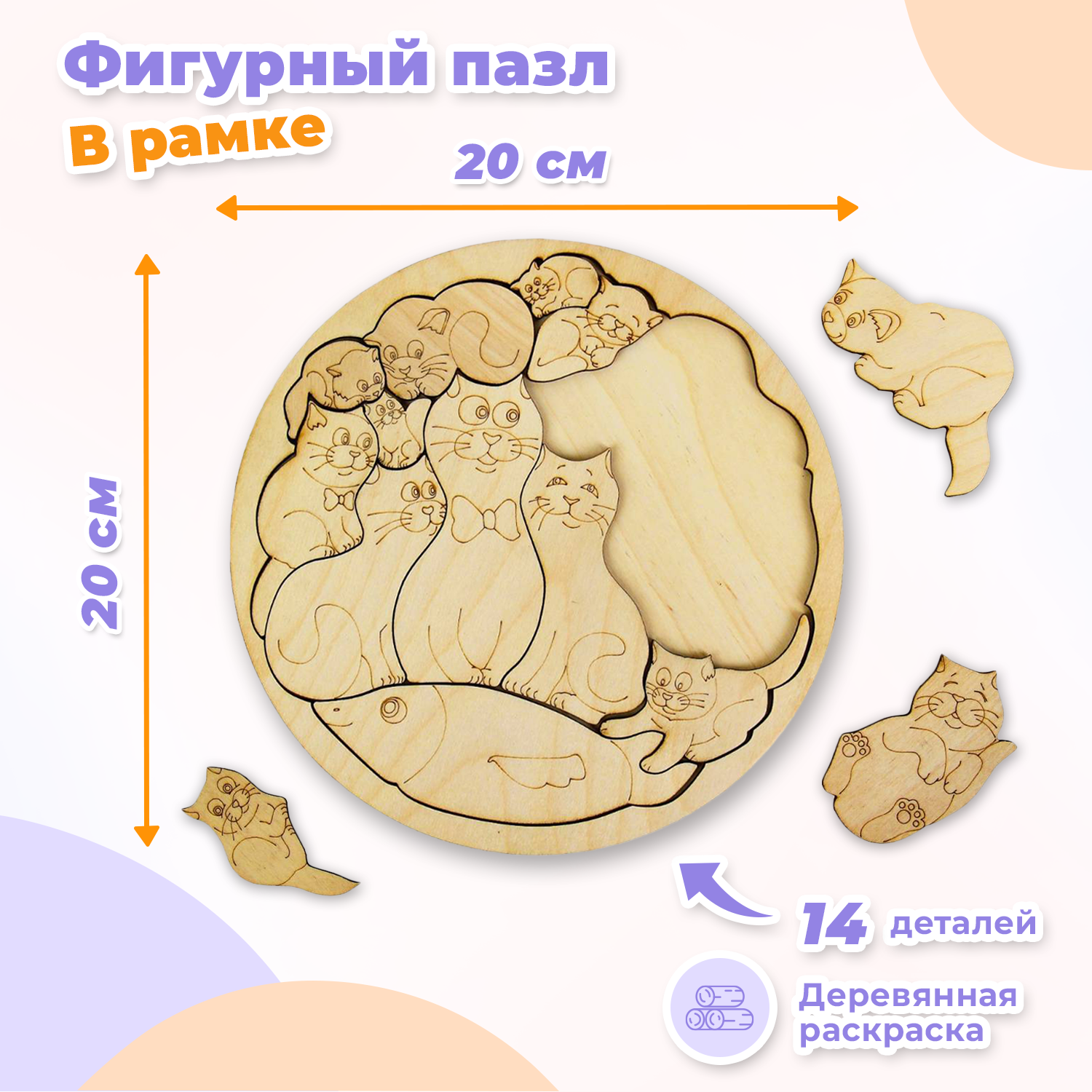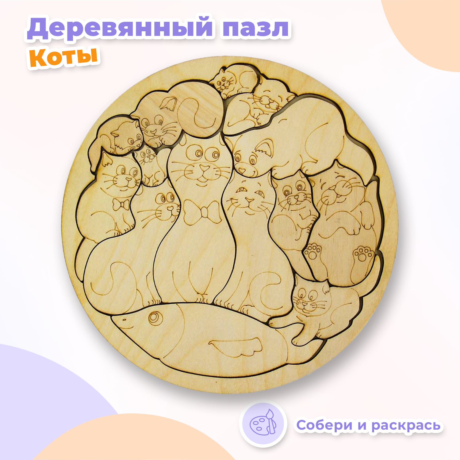Отзывы на Деревянная рамка-вкладыш Smile Decor "Коты", пазл-раскраска для малышей
