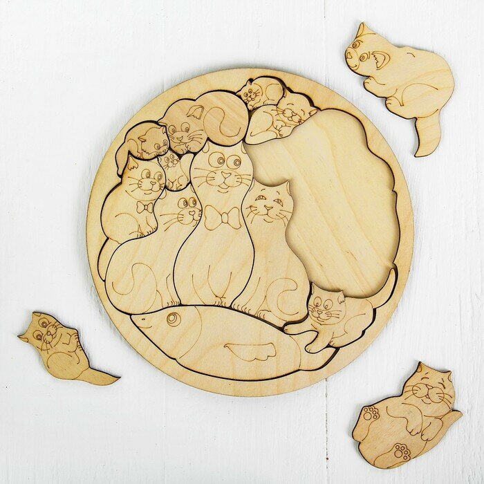 10 цен на Деревянная рамка-вкладыш Smile Decor "Коты", пазл-раскраска для малышей