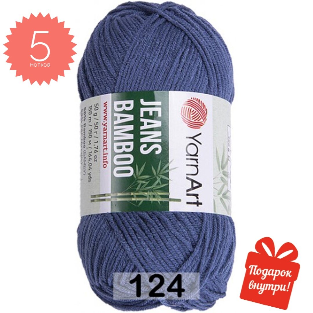 Пряжа для вязания YarnArt Jeans Bamboo (Джинс Бамбук) - 5 мотков 124 джинс, для детских вещей и джемперов, 50% бамбук, 50% акрил, 150 м/50 г информация: