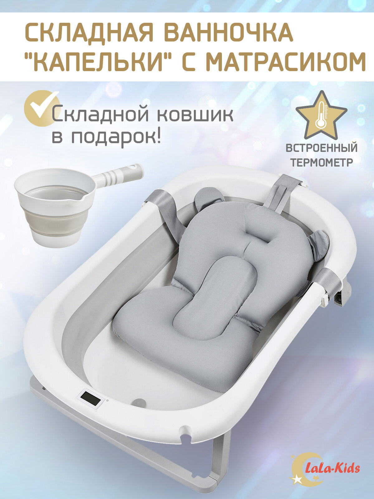 Отзывы на Ванночка для купания новорожденных складная с термометром и матрасом LaLa-Kids серая