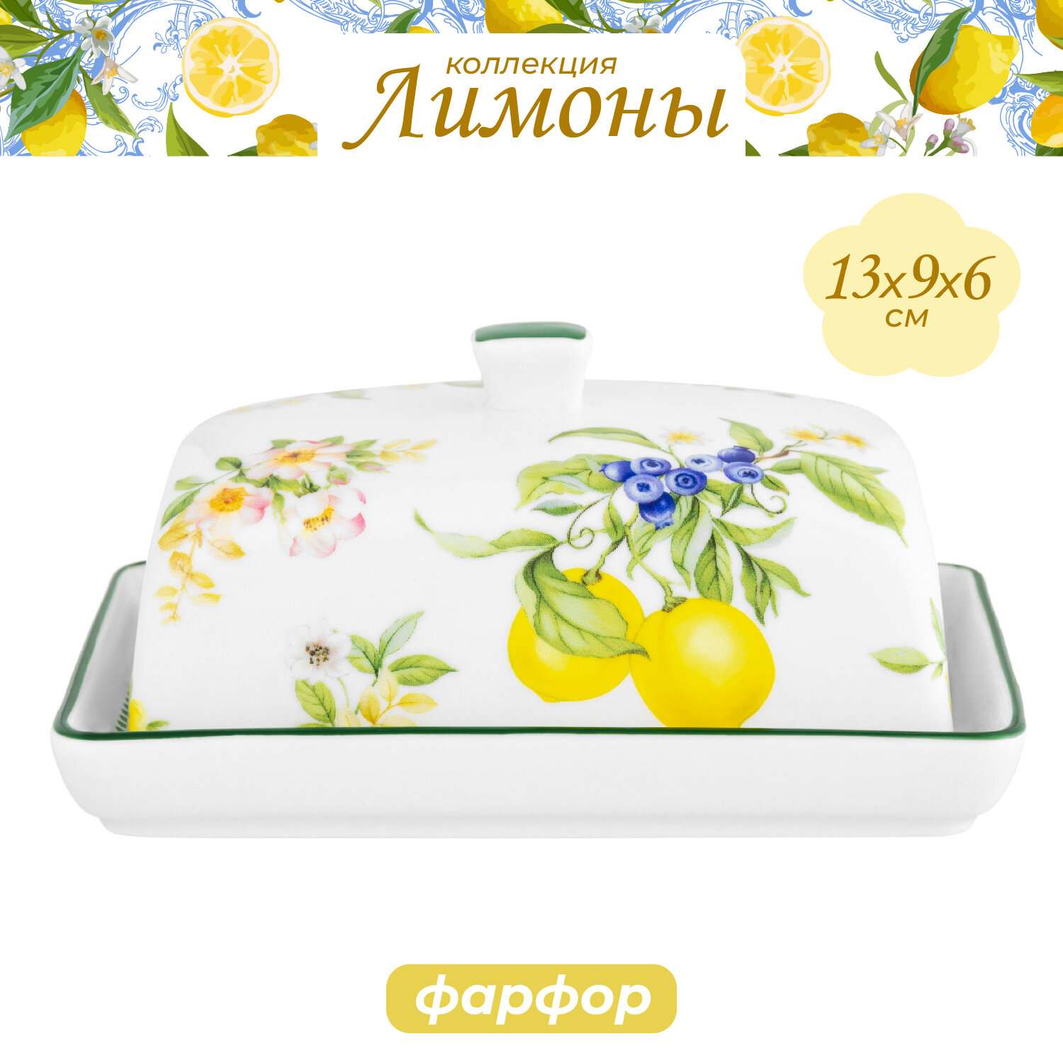 Масленка Elan Gallery "Лимоны" с крышкой из фарфора, 13 х 9 х 7 см информация: