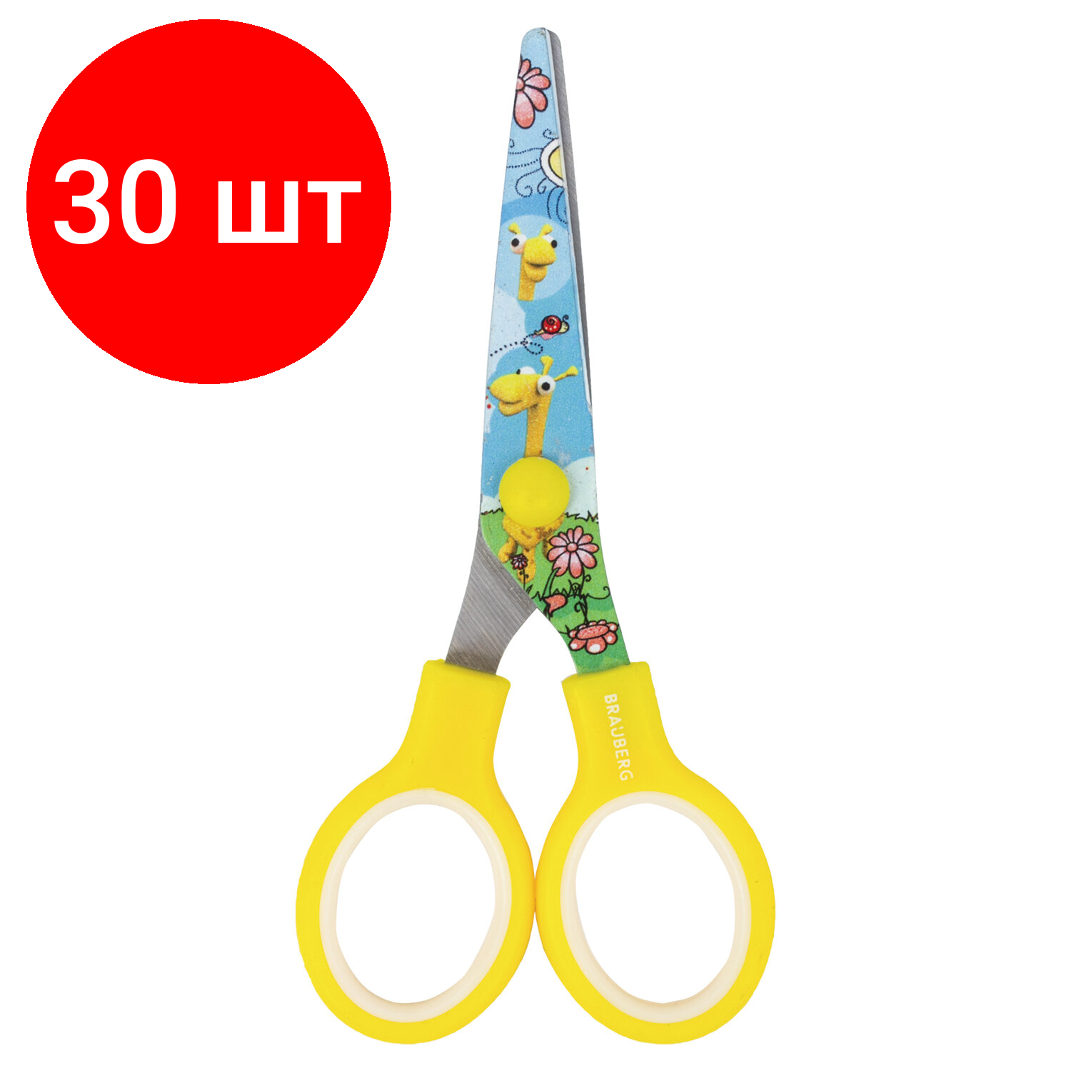 Отзывы на Комплект 30 шт, Ножницы BRAUBERG "Kid Series", 130 мм, жёлтые, с цветной печатью "Жирафы", закругленные, 232269