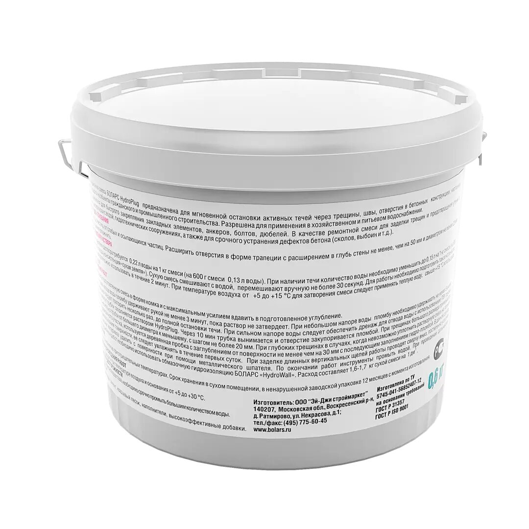 Гидропломба Боларс Hydroplug 0.6 кг информация: