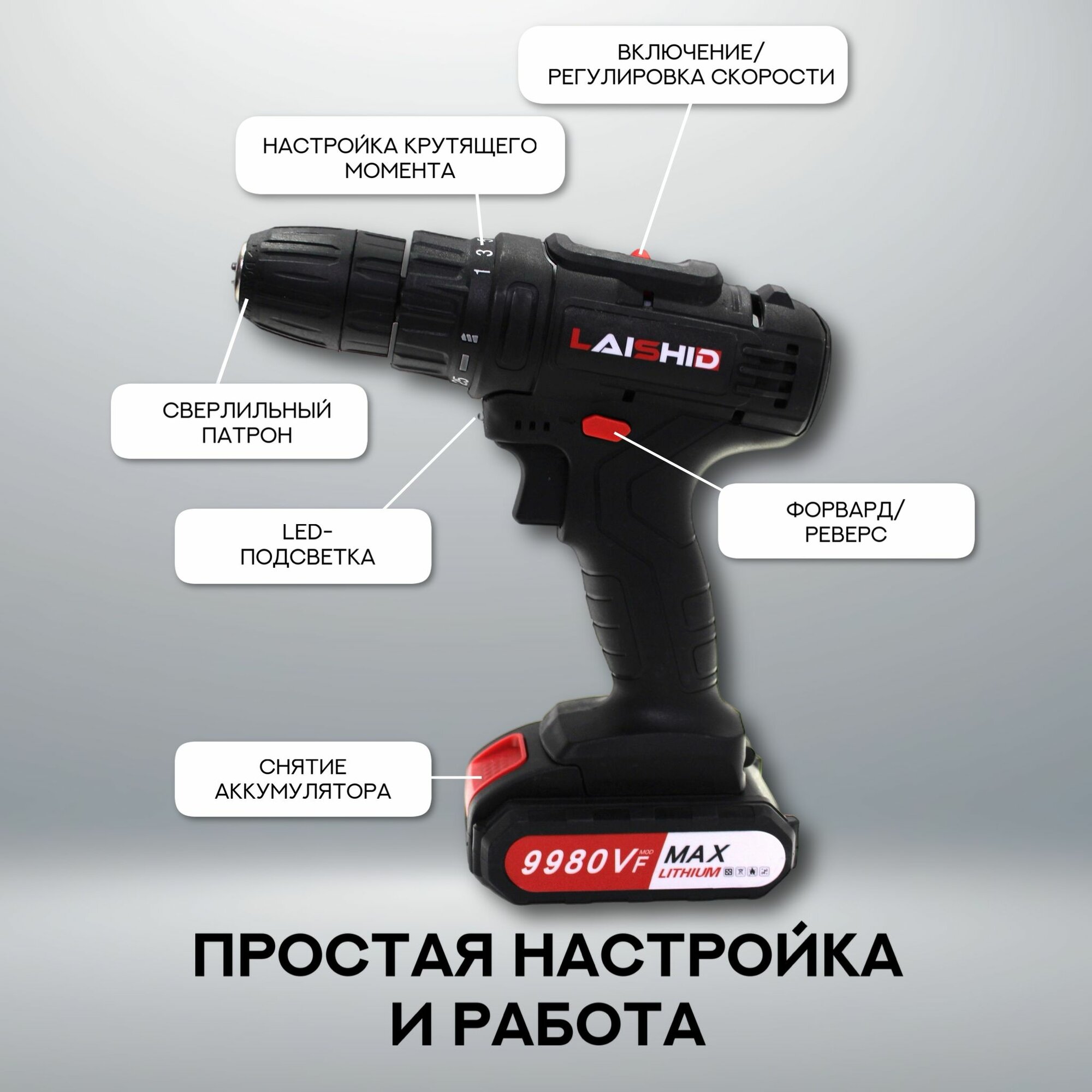 Отзывы на Аккумуляторный шуруповерт Laishid 48V с двумя аккумуляторами и зарядным устройством